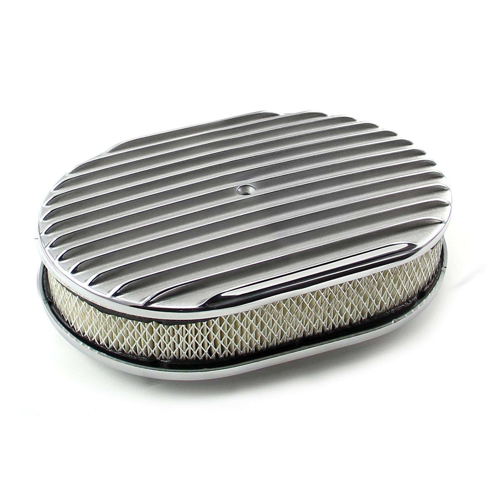 Kit de filtro de aire clásico de aluminio pulido con aletas ovaladas de 12" x 2"