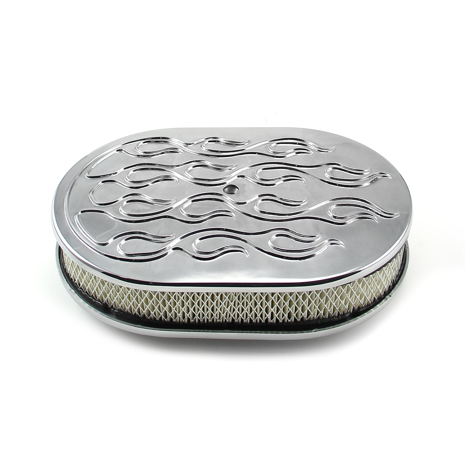 Kit de filtro de aire de aluminio pulido flameado ovalado de 12" x 2"