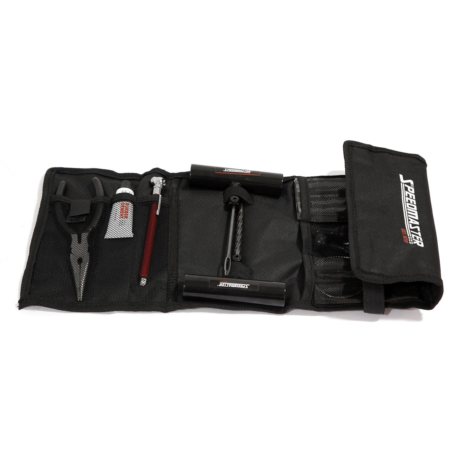 Kit de reparación de pinchazos de neumáticos de 31 piezas para motocicleta, coche y camión - Estuche blando enrollable