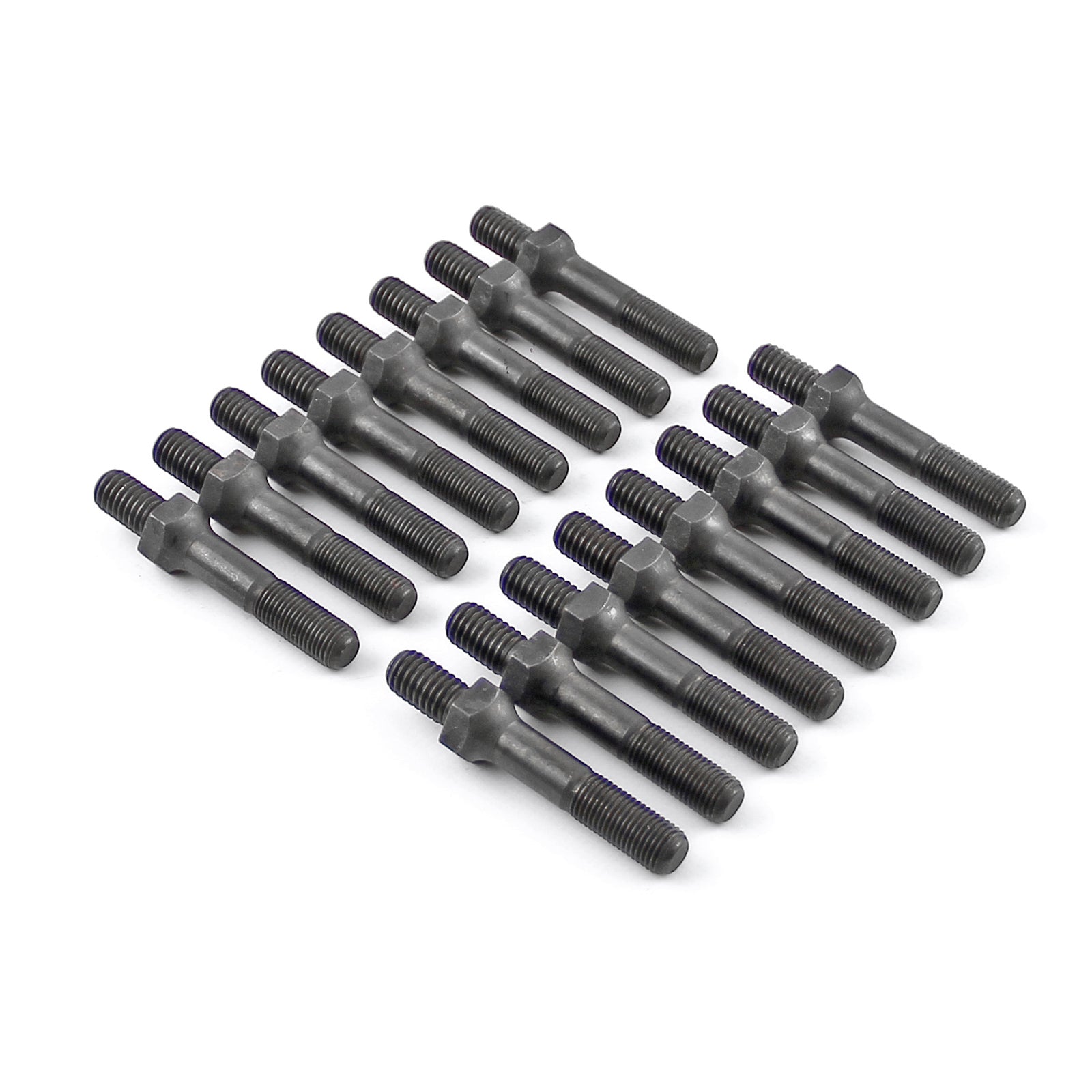 Los kits de espárragos del brazo Speedmaster están fabricados en acero al cromo-molibdeno 4140. Están roscados por laminación y tratados térmicamente para una resistencia máxima de más de 190.000 PSI. Además, tienen un acabado de óxido negro resistente a la corrosión. Incorporan filetes de espárrago con radio más grande para mayor resistencia.