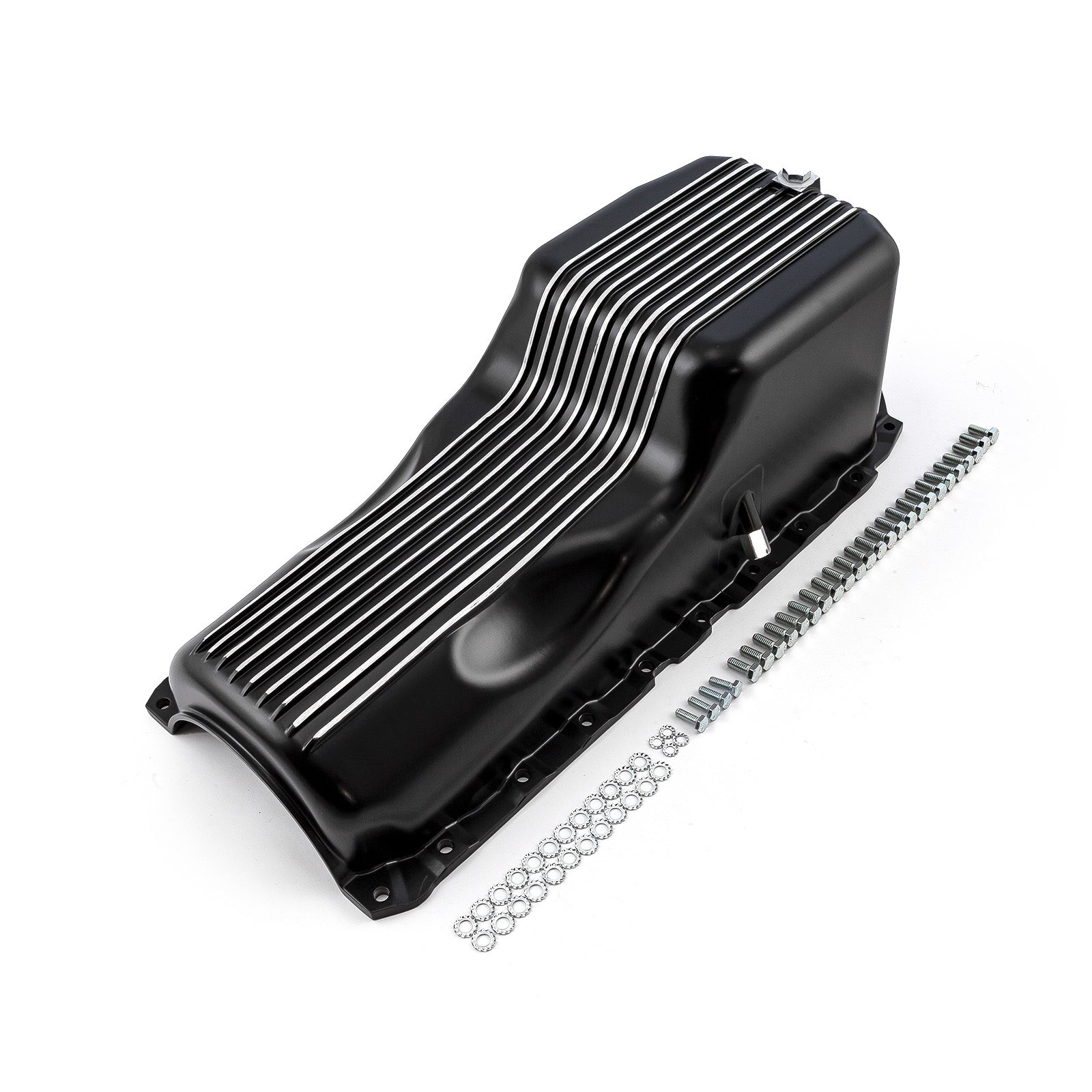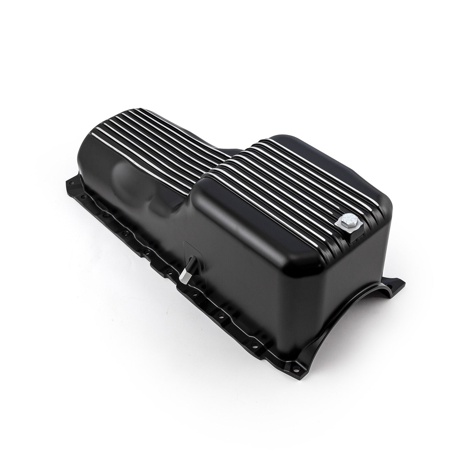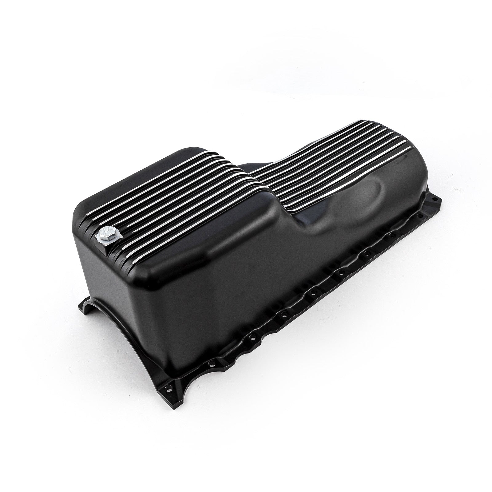 Cárter de aceite de aluminio con aletas negras para Chevy BBC 454, 1 pieza, finales de generación 5 y 6, 1991 en adelante