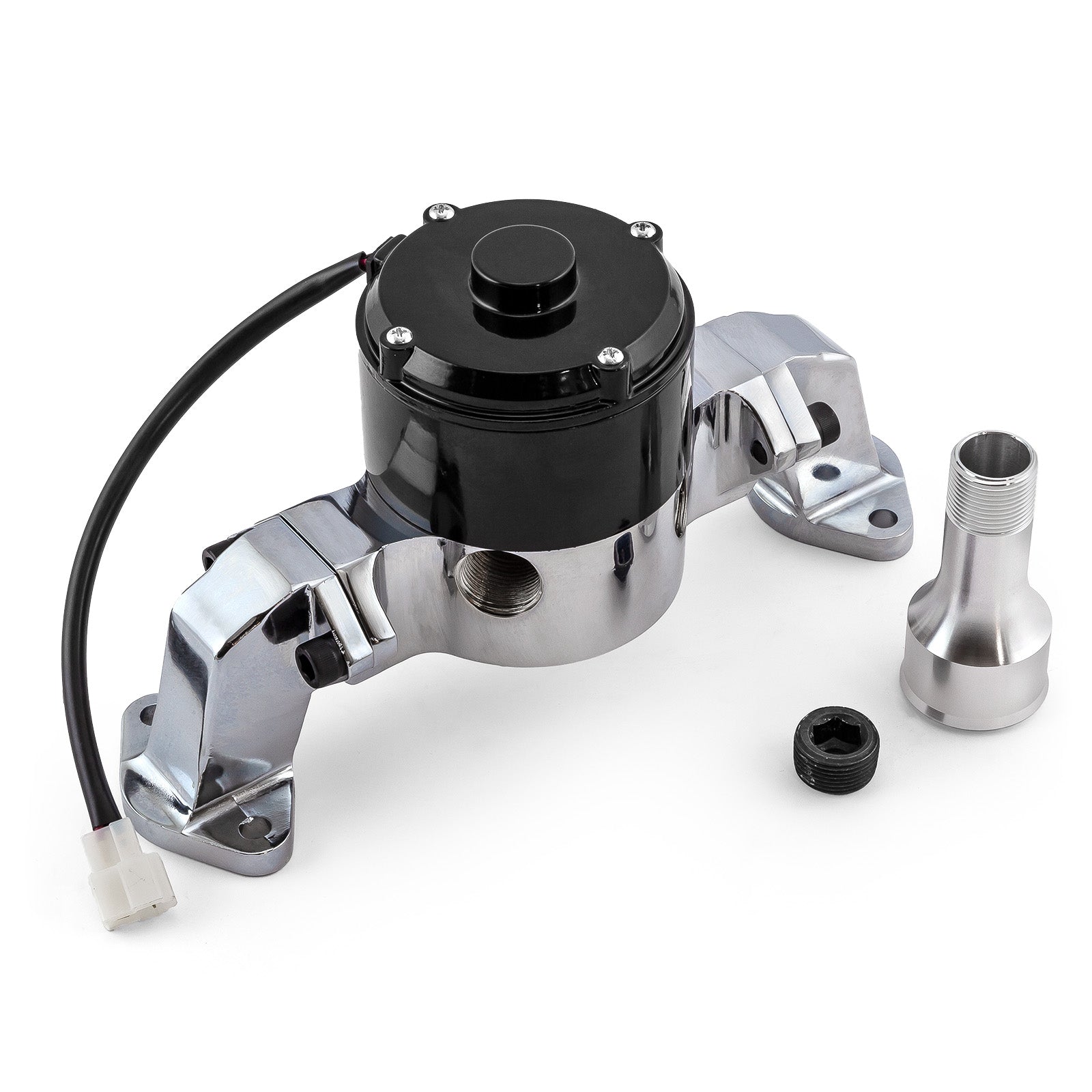 Las bombas de agua eléctricas Speedmaster eliminan el peso innecesario y la resistencia del impulsor a altas RPM. Estas bombas de aluminio, resistentes pero ligeras, bombean hasta 35 galones de agua por minuto de circulación de refrigerante. Las bombas de agua eléctricas Speedmaster le brindan el caudal que necesita sin sacrificar potencia. Mecanizadas en CNC a partir de aluminio T-6, estas bombas ligeras cuentan con un motor de 12 V de transmisión directa que hace girar un impulsor rediseñado sobre un eje de acero inoxidable. Las bombas Speedmaster consumen solo 5.8 amperios. Al no funcionar con el cigüeñal, no consumen la potencia necesaria para ganar carreras. Otras características incluyen la disponibilidad en varios colores, una supresión superior de interferencias de radiofrecuencia (RFI) y una sección central extraíble para ajustar o reemplazar la leva.