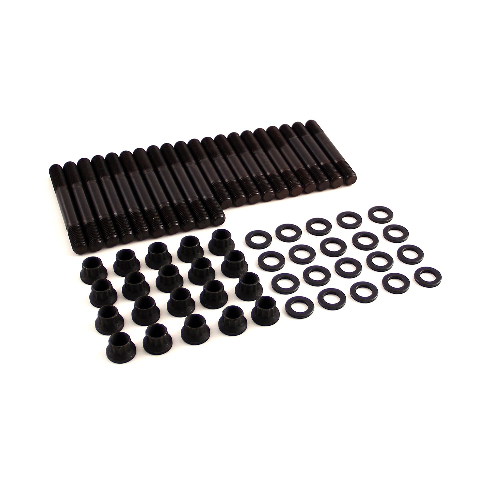 Los espárragos de motor Speedmaster son de primera calidad y calidad de competición, fabricados con acero al cromo-molibdeno 8740 de alta resistencia a la tracción, de calidad aeronáutica, que soporta hasta 190.000 PSI. Se rectifican y roscan tras el tratamiento térmico para garantizar las tolerancias precisas que Speedmaster exige para todos sus tornillos. Esto garantiza resistencia y lecturas de par constantes. Todos los kits incluyen arandelas 4130 con tratamiento térmico y rectificado paralelo, y tuercas de 12 puntas de alta resistencia.