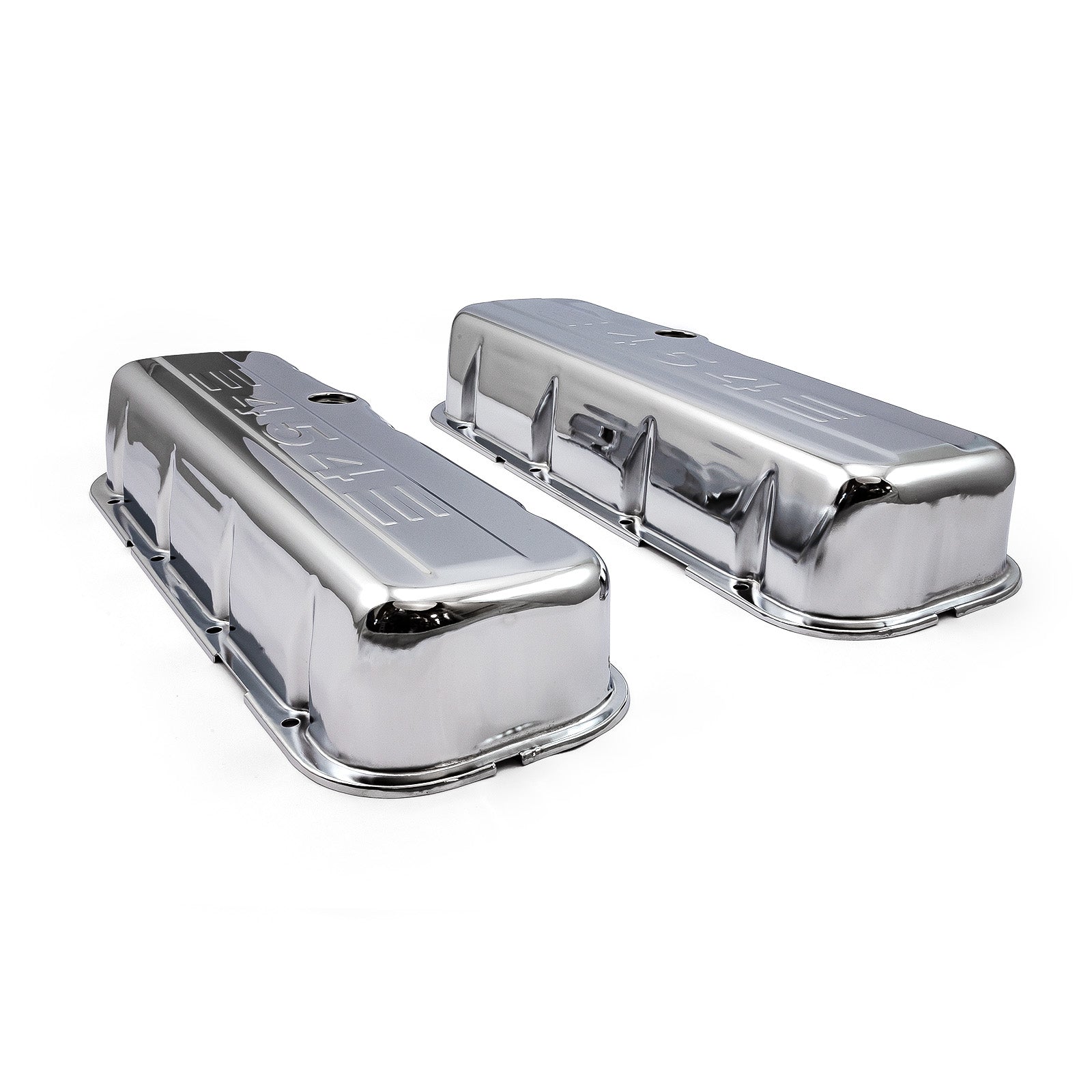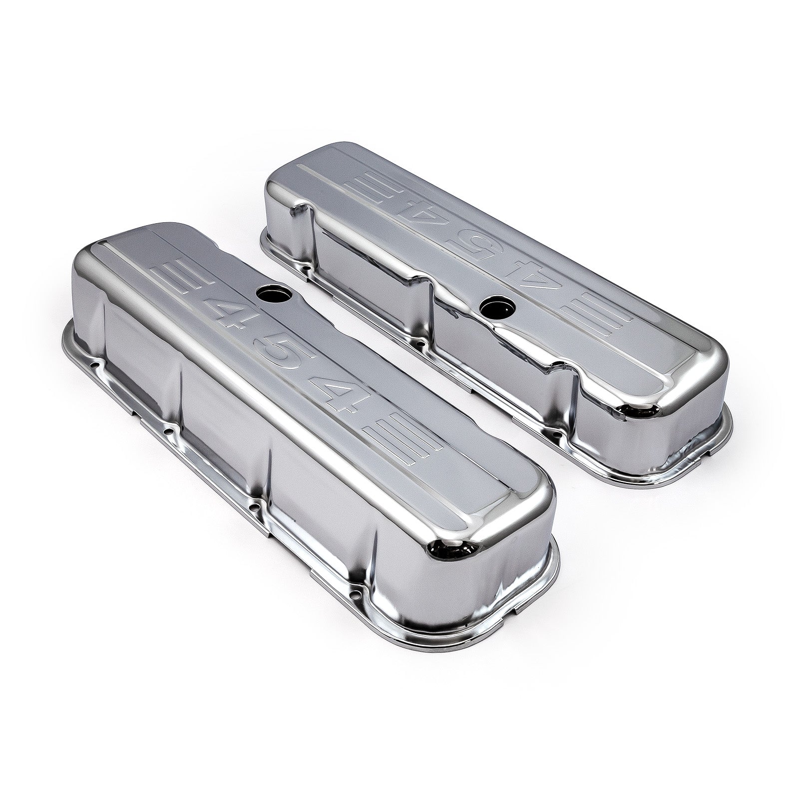 Tapas de válvulas de acero cromado "454 Stamped" para Chevy BBC 454 - Altas con orificio deflector