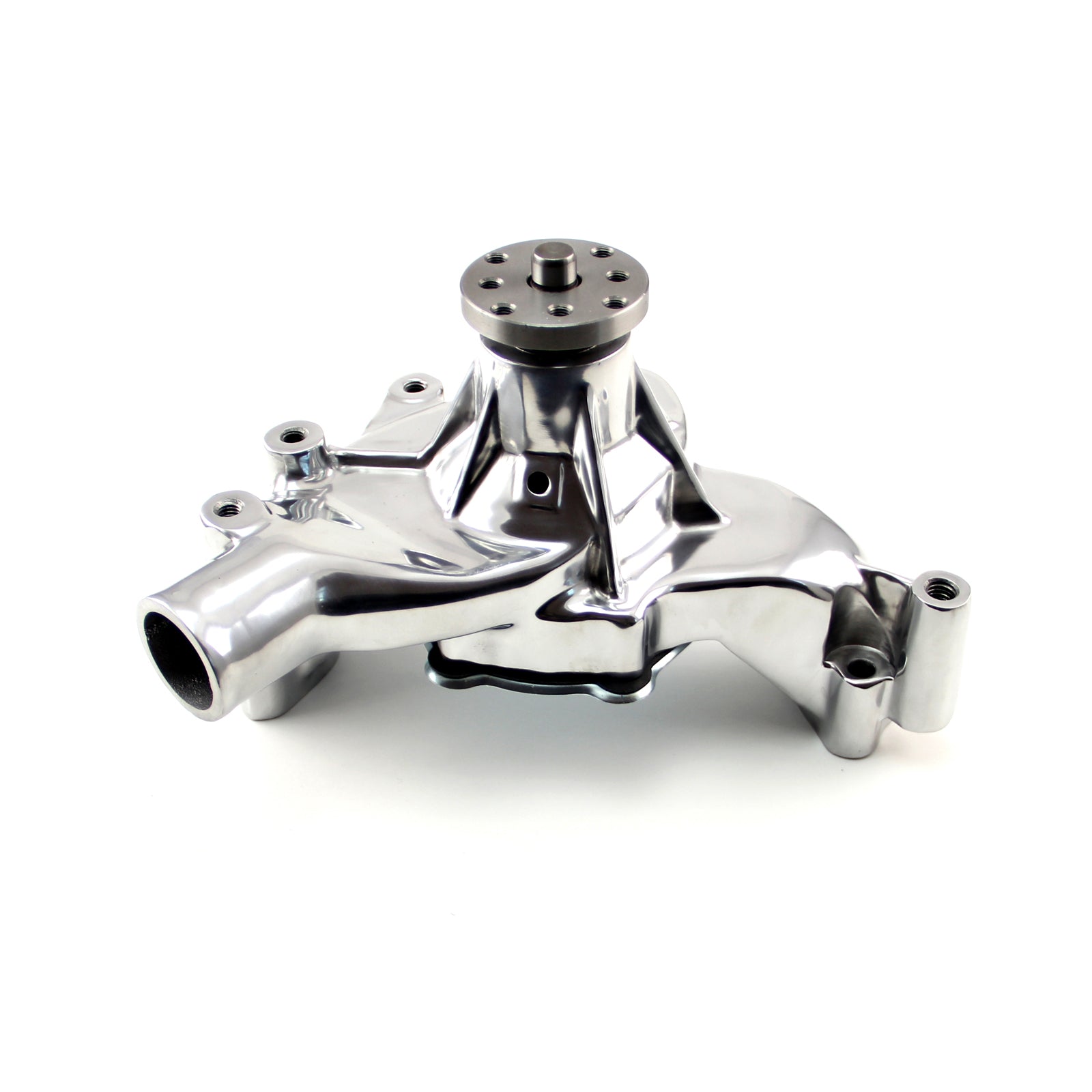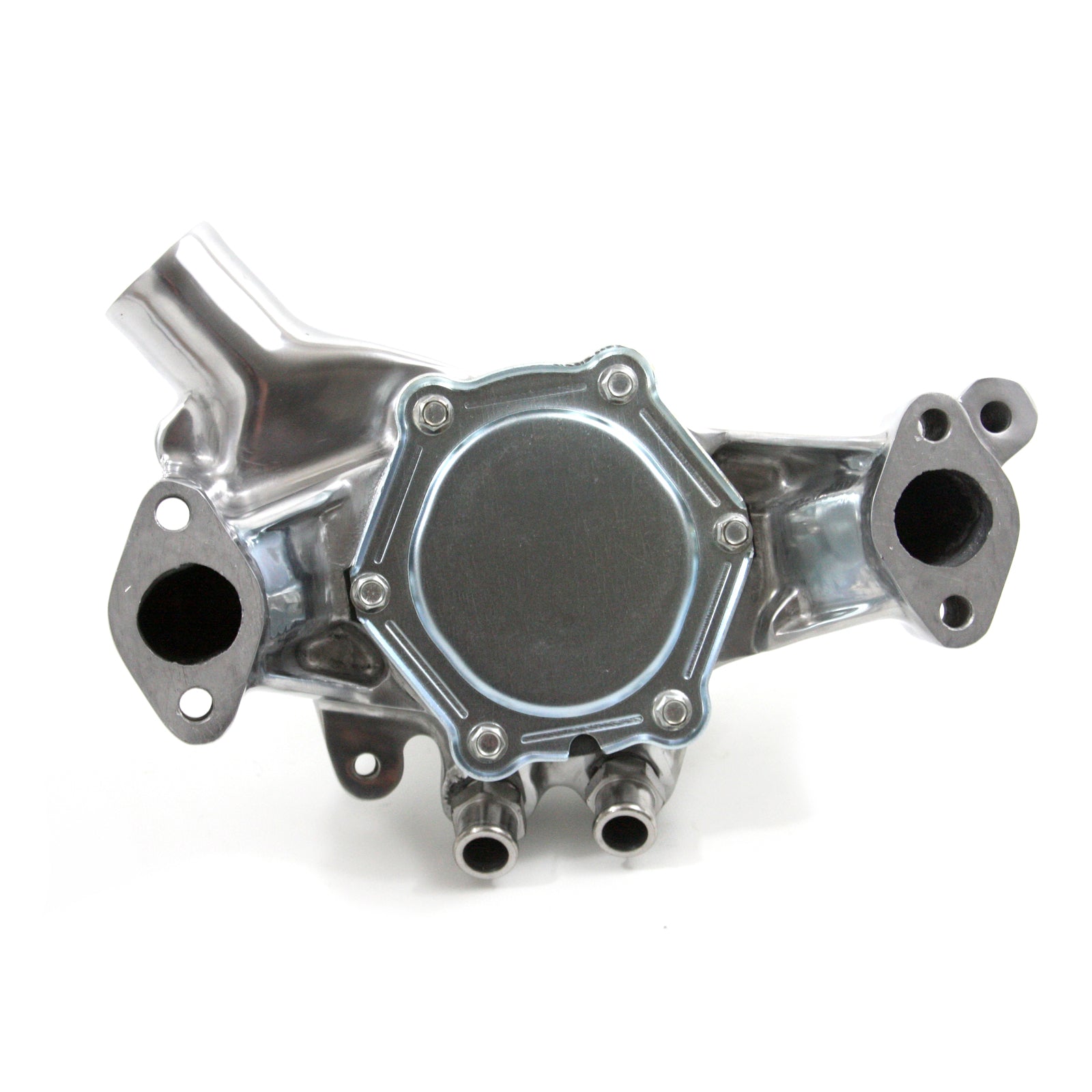 Las bombas de agua Speedmaster de alto volumen cuentan con una carcasa de aluminio acanalado y un conjunto de rodamientos de bolas/rodillos de alta resistencia. Incorporan un impulsor y una cavidad más grandes para que fluya un 40 % más de refrigerante que las bombas de serie. Elija entre modelos largos o cortos con acabados naturales o pulidos. Consiga un alto caudal para su coche con las bombas de agua Speedmaster.