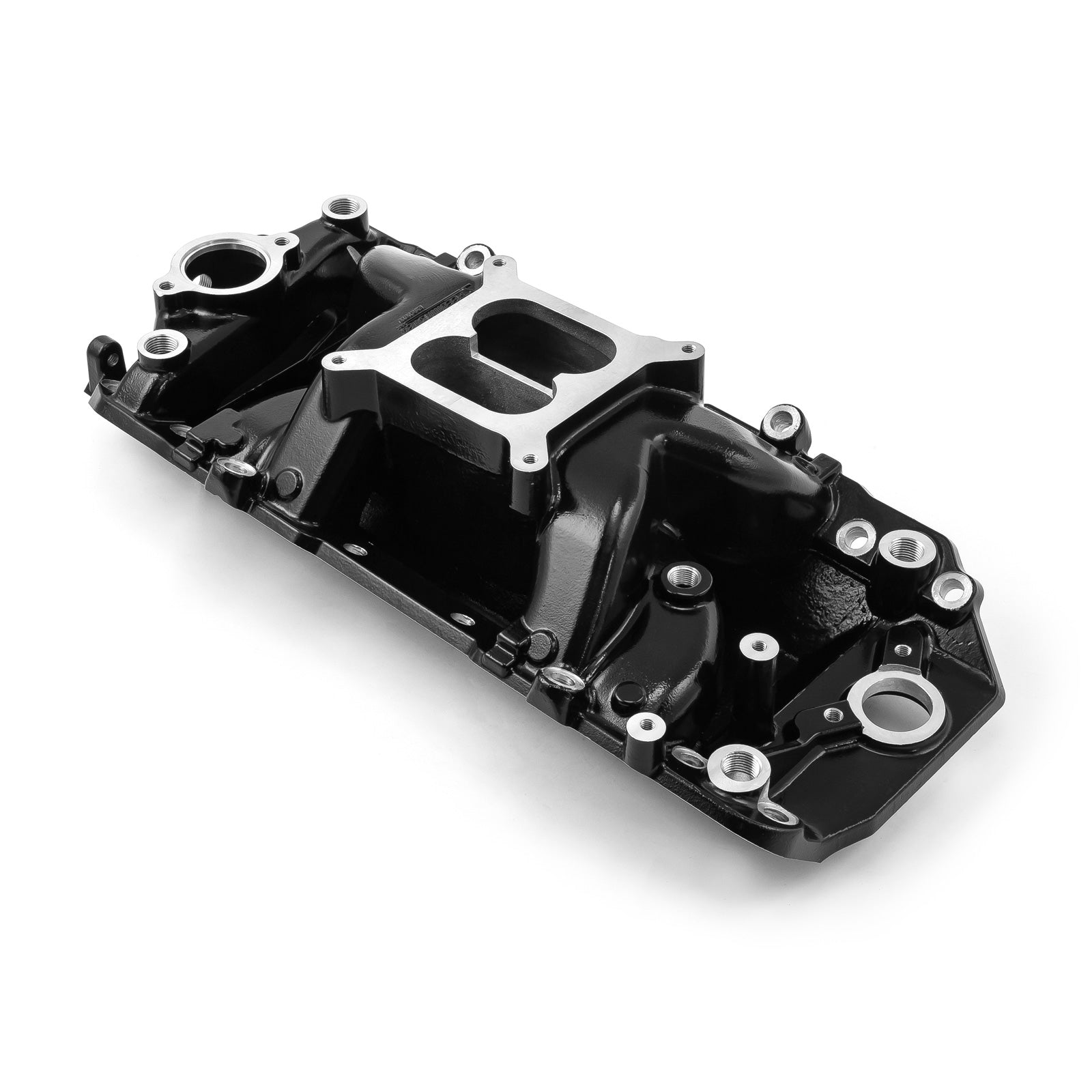 Colector de admisión de aire de aluminio de perfil medio con puerto ovalado para Chevy BBC 454 [Negro]