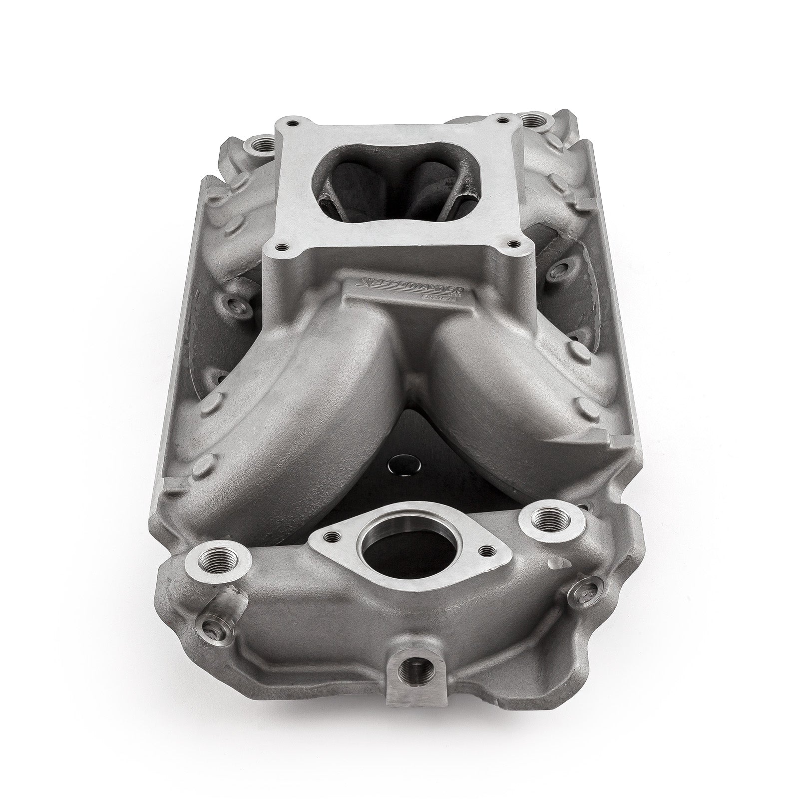 Step up to the high-rpm power of an open plenum with Speedmaster HiRise intake manifolds. These cast aluminum manifolds accept square-bore carburetors and are pressure tested to ensure maximum performance. They start to make awesome power around 3,000 rpm.