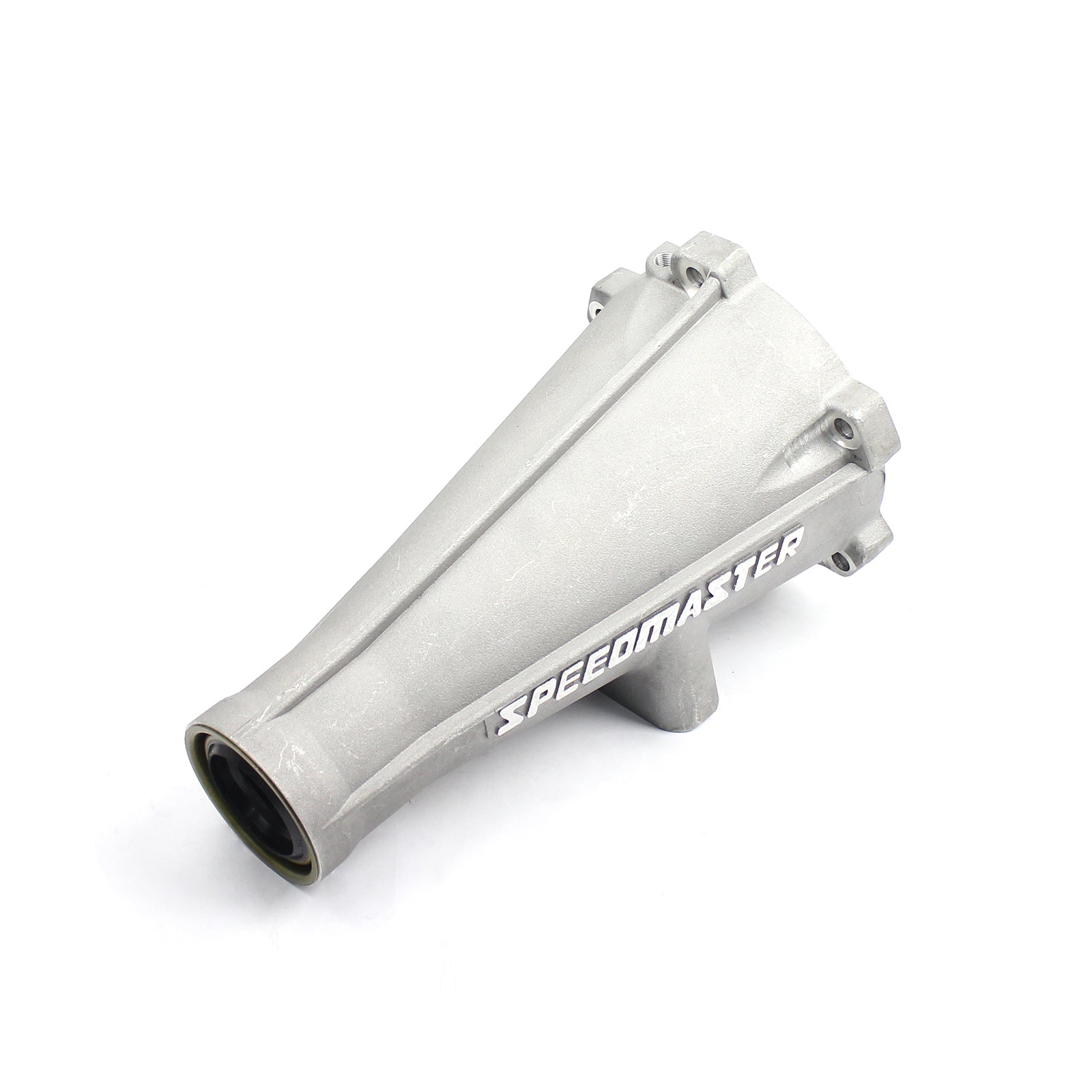 Esta carcasa de eje de transmisión Speedmaster está diseñada para las transmisiones GM Powerglide de serie y admite una horquilla TH400. Es cinco veces más resistente y con más estrías que la de serie gracias a su fabricación en aleación de aluminio de grado aeronáutico, paredes más gruesas y mayor triangulación que la de otros fabricantes. También incluye un rodamiento de rodillos en el extremo del eje de transmisión, lubricado por nuestro conducto rediseñado para la horquilla y el conjunto de rodamiento trasero.