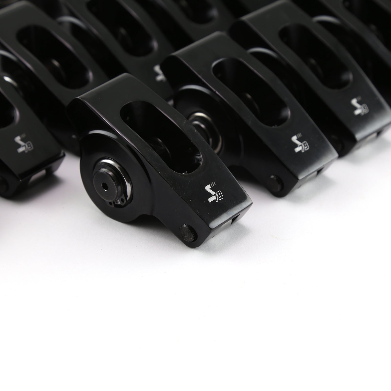 Los balancines de aluminio Speedmaster Blacklabel Series son utilizados en todo el mundo por pilotos profesionales, constructores de motores y aficionados a los hot rods, ofreciendo ventajas excepcionales de potencia y rendimiento para aplicaciones en calle, pista y circuito. Fabricados con extrusiones de aluminio 6061-T6 de alta resistencia, cada pieza se mecaniza con precisión en CNC y se termina a mano para garantizar que nuestros clientes reciban lo mejor que Speedmaster puede ofrecer. Los balancines de aluminio Speedmaster con montaje de perno están especialmente mecanizados para permitir resortes y retenedores más grandes con rodamientos de jaula completa que reducen la fricción para una mayor durabilidad. Los rodillos de punta y los ejes son de acero Cr40, tratados térmicamente y endurecidos para minimizar el desgaste que se produce naturalmente entre la punta del rodillo y el vástago de la válvula.