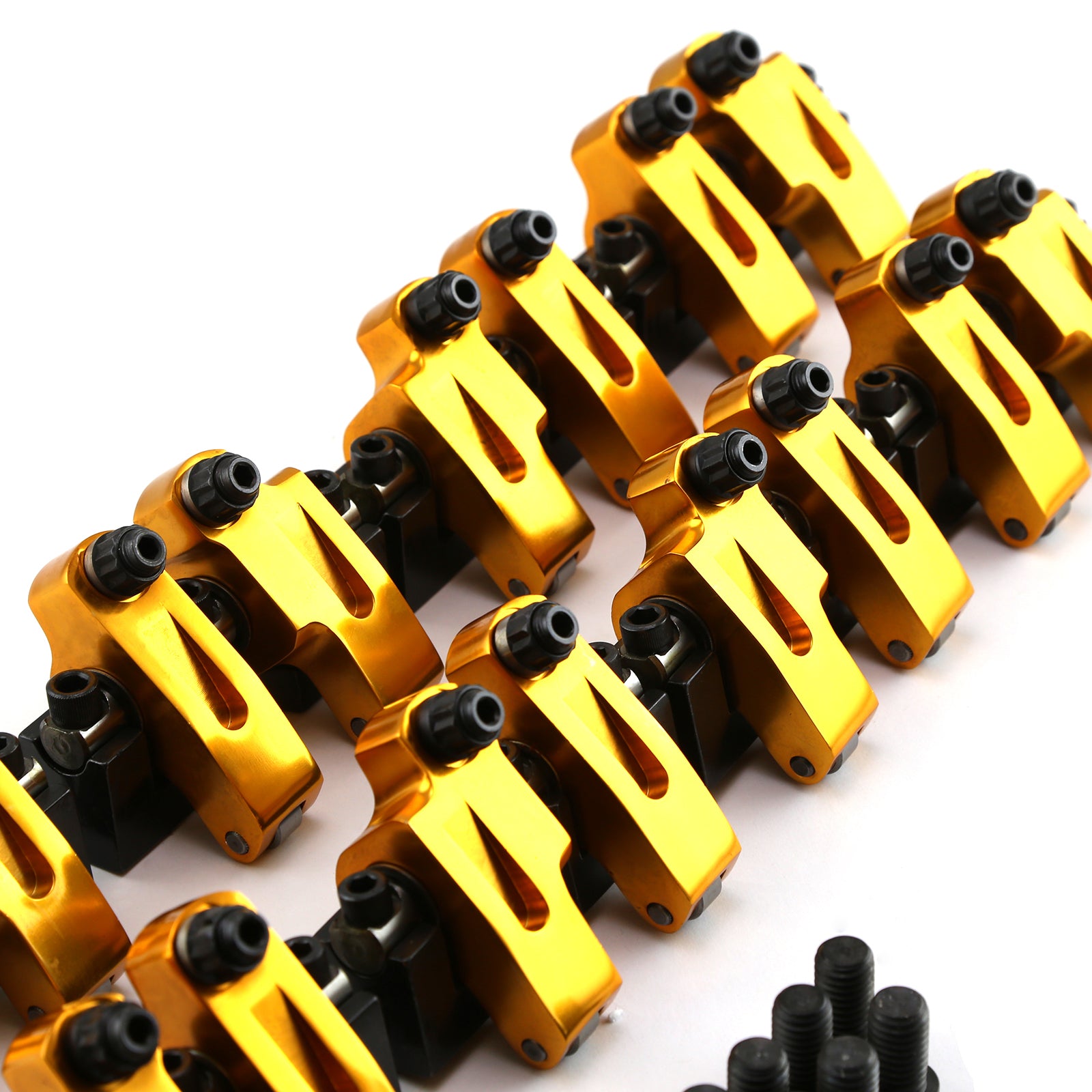 Brazos basculantes de rodillos de montaje en eje Chevy SBC 350 de 15 grados y 1,6 pulgadas, 0,450 pulgadas de interior y 0,180 pulgadas de exterior.