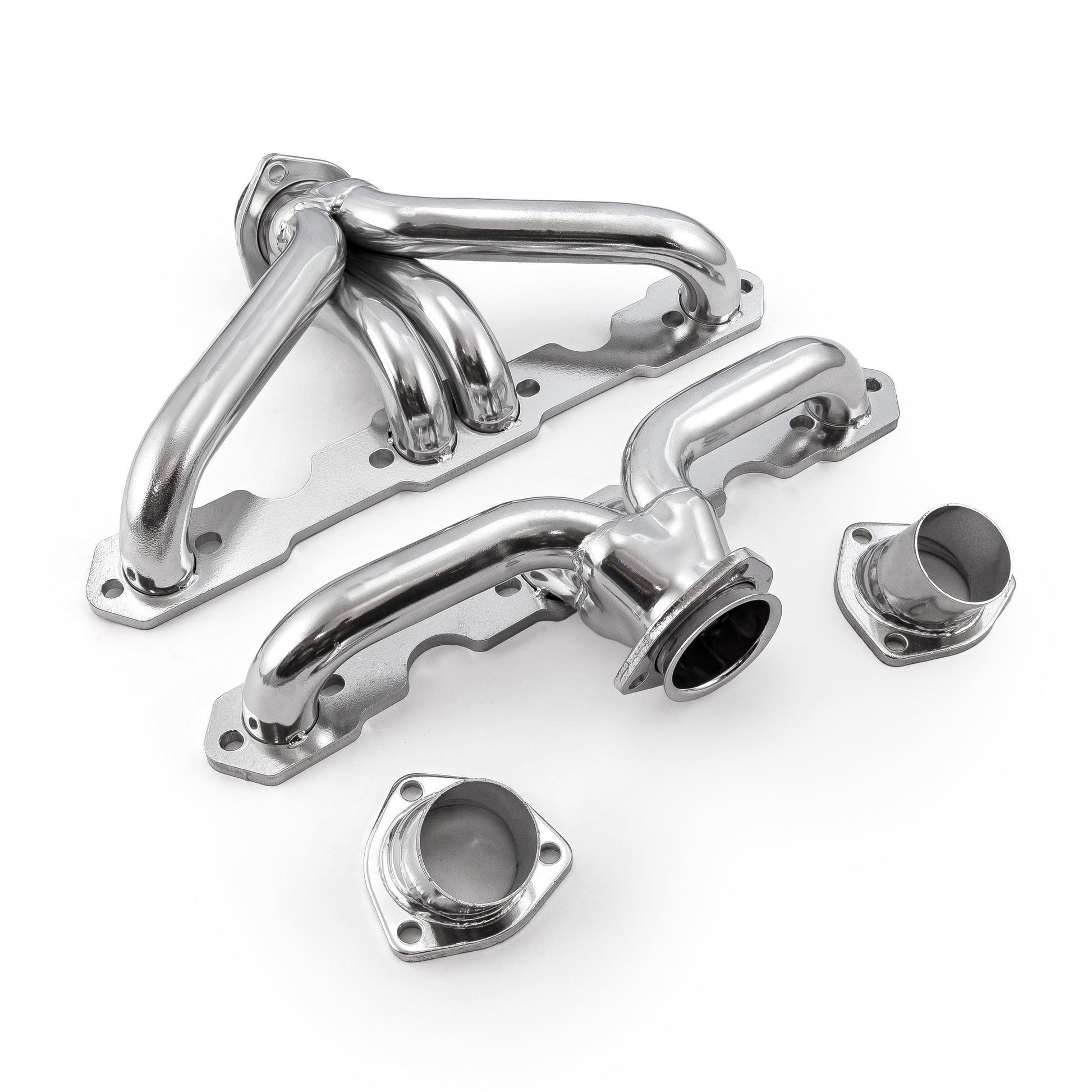 If you're looking for headers designed for maximum street performance, look no further than PCE. They are designed for stock or mildly modified engines for the value-conscious buyer. Made from durable 16-gauge steel, Those Speedmaster headers feature 3/8 in. thick flanges that are heavy enough to maintain header integrity, yet pliable enough to seal each exhaust port. If your vehicle is using aftermarket components, parts from other applications, or custom altered parts, then it is the installer's responsibility to verify fitment.