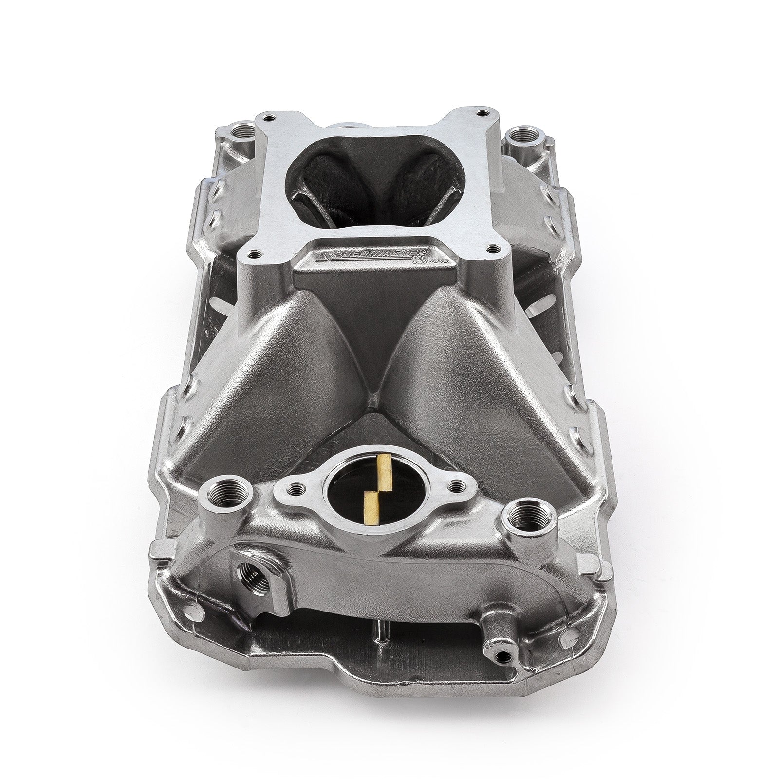 Step up to the high-rpm power of an open plenum with Speedmaster HiRise intake manifolds. These cast aluminum manifolds accept square-bore carburetors and are pressure tested to ensure maximum performance. They start to make awesome power around 3,000 rpm.
