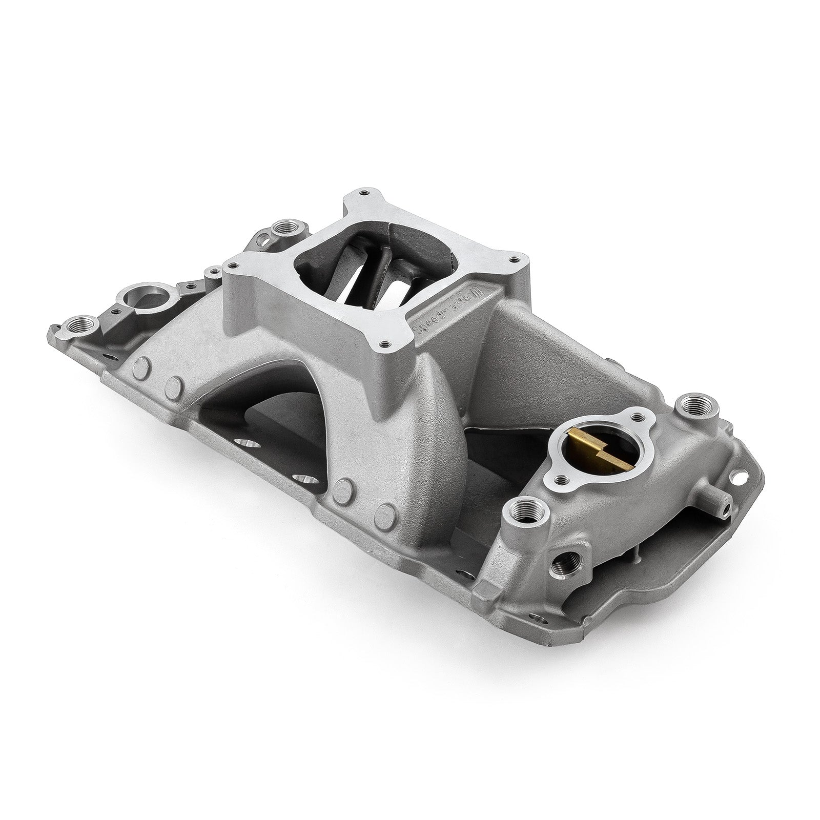 Step up to the high-rpm power of an open plenum with Speedmaster HiRise intake manifolds. These cast aluminum manifolds accept square-bore carburetors and are pressure tested to ensure maximum performance. They start to make awesome power around 3,000 rpm.