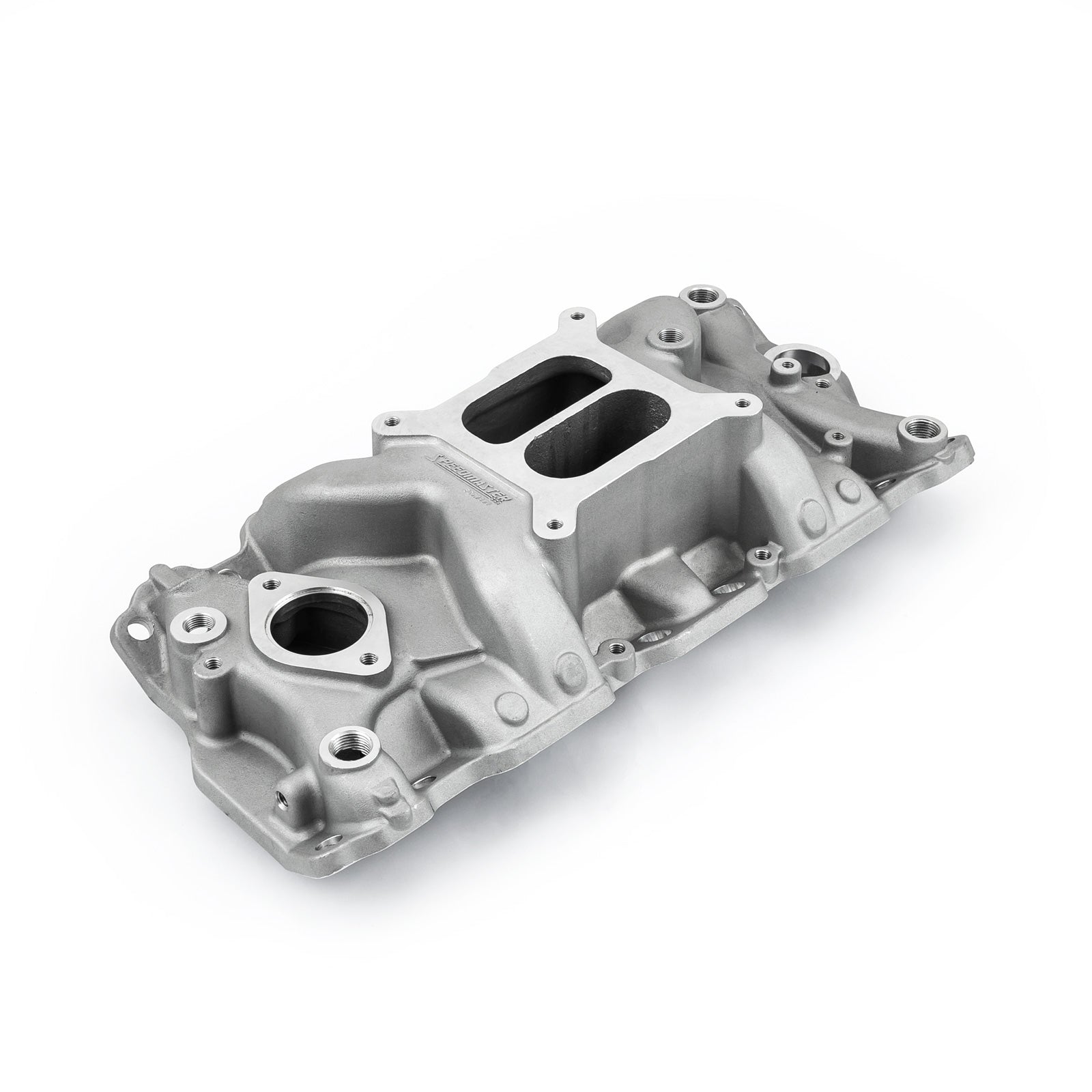 Colector de admisión de aluminio LowRise+ para Chevy SBC 350 1957-95 (sin EGR) [satinado]