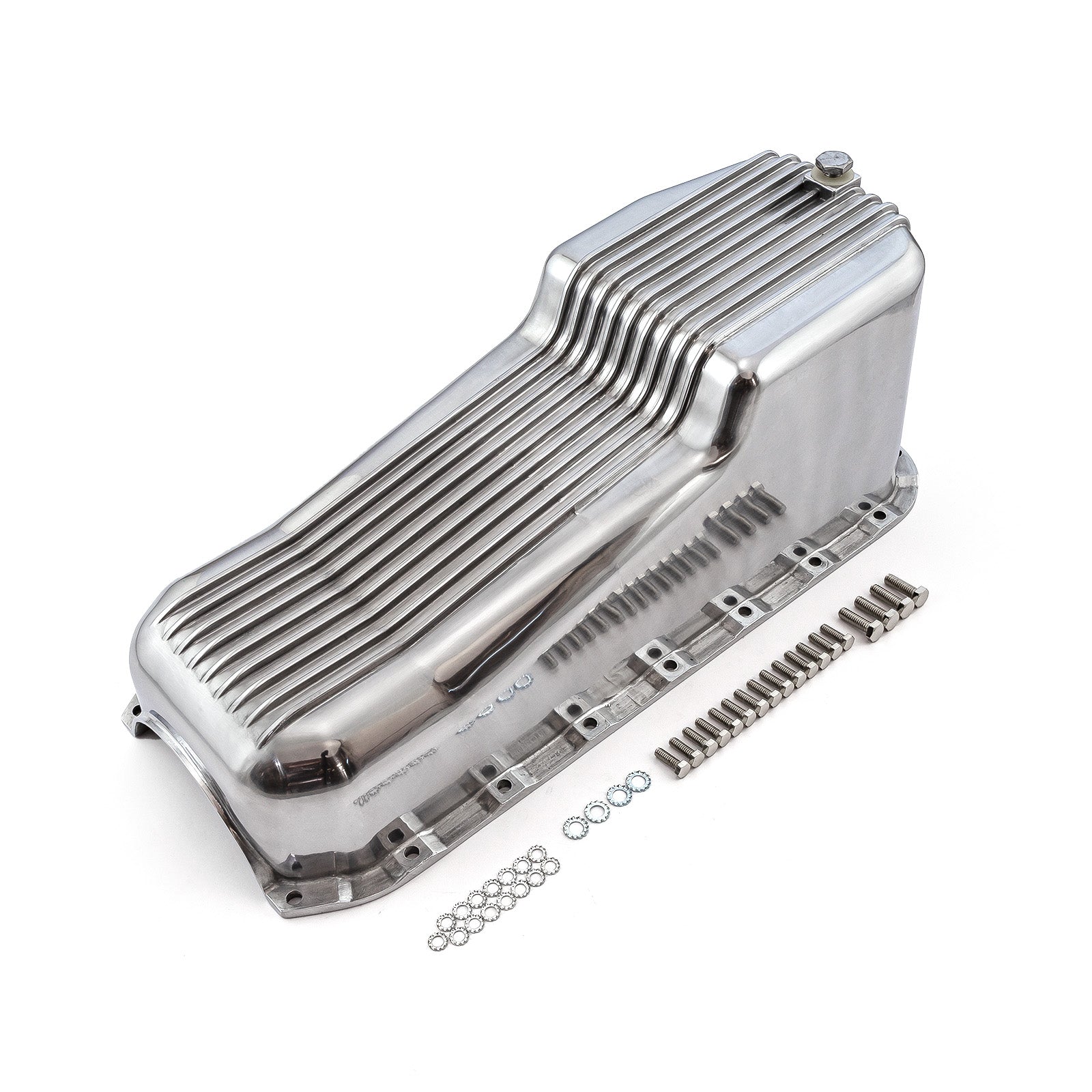 Cárter de aceite de aluminio pulido con aletas para Chevy SBC 350 (2 piezas, 1955-79, lado D)