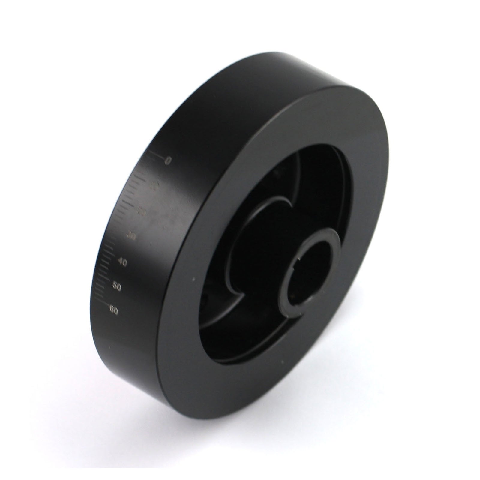 Los amortiguadores Speedmaster Harmonic se fabrican con acero forjado K1045 de bajo carbono y elastómero templado entre las dos capas de acero. Estos amortiguadores se adhieren mediante un proceso de adhesión que une el elastómero al diámetro interior del anillo de inercia y al diámetro exterior del cubo, utilizando un adhesivo fuerte y un elastómero mejorado para crear una unión mucho más resistente. También presentan marcas de sincronización blancas, claras y fáciles de leer sobre un fondo negro pintado. El anillo de inercia de acero gira armoniosamente con el motor y absorbe la vibración de torsión del conjunto giratorio a cualquier frecuencia y RPM. Esto prolonga la vida útil del cigüeñal y los cojinetes, lo que permite que el motor genere más potencia y par.