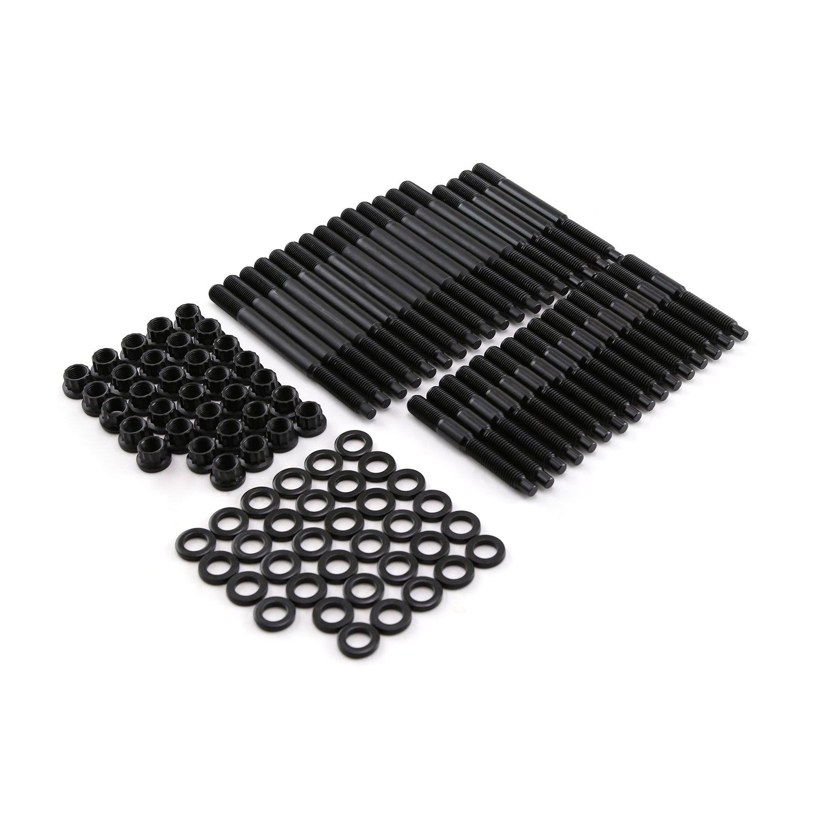 Los sujetadores de culata Speedmaster están fabricados con acero al cromo-molibdeno 8740 de alta resistencia a la tracción y calidad aeronáutica, y forjados en frío para garantizar su integridad molecular. Se tratan térmicamente antes del laminado de roscas y mecanizado, y alcanzan una impresionante presión de 190,000 psi. Todos los kits incluyen tuercas de 12 puntos y arandelas paralelas endurecidas para una distribución uniforme de la carga y lecturas de torque precisas.