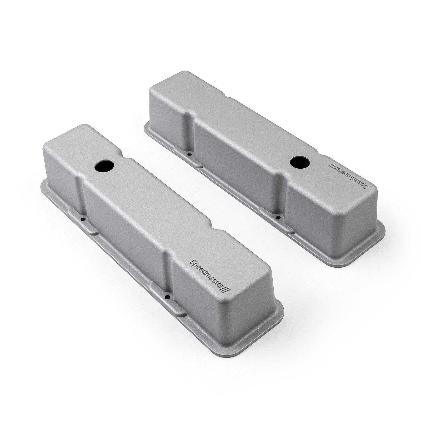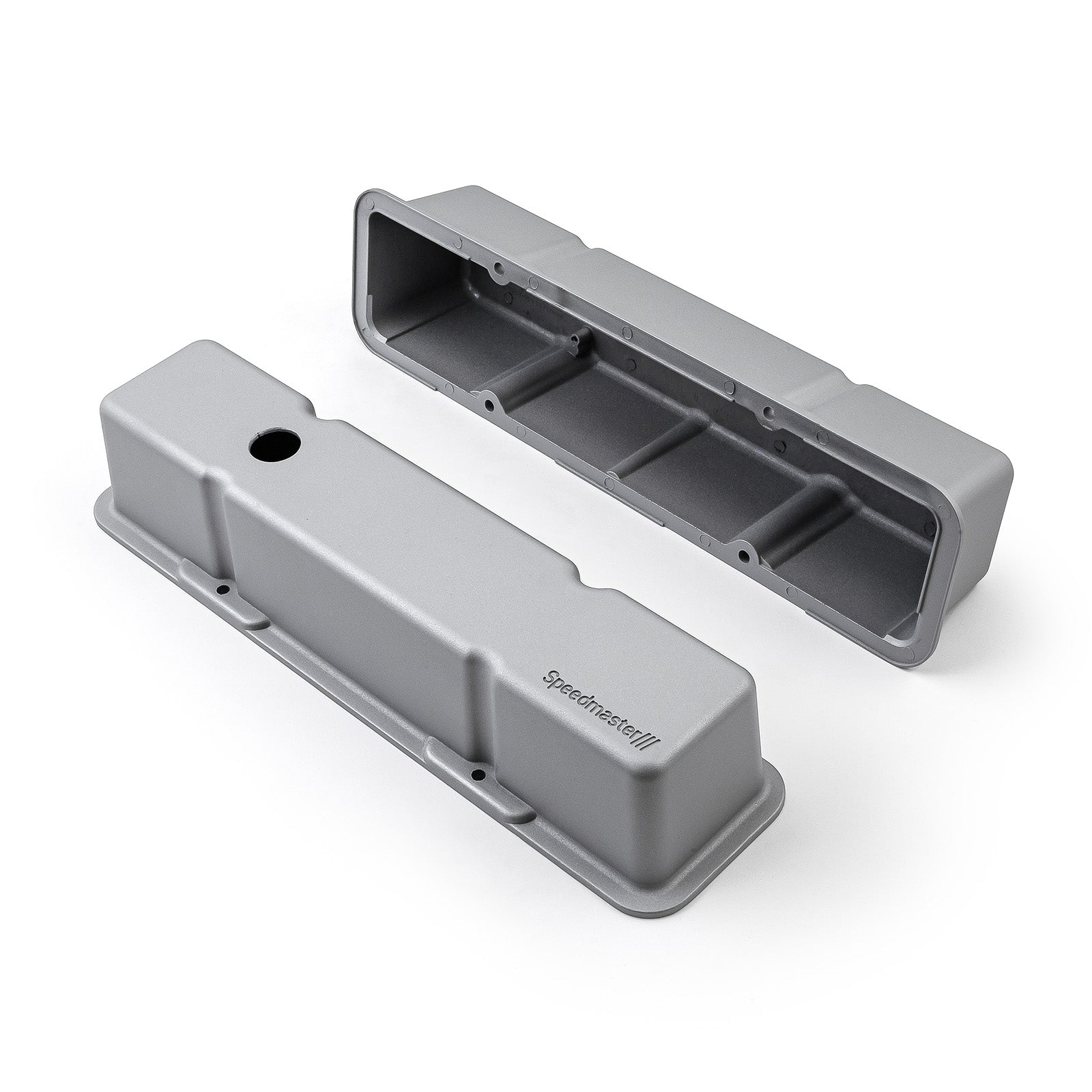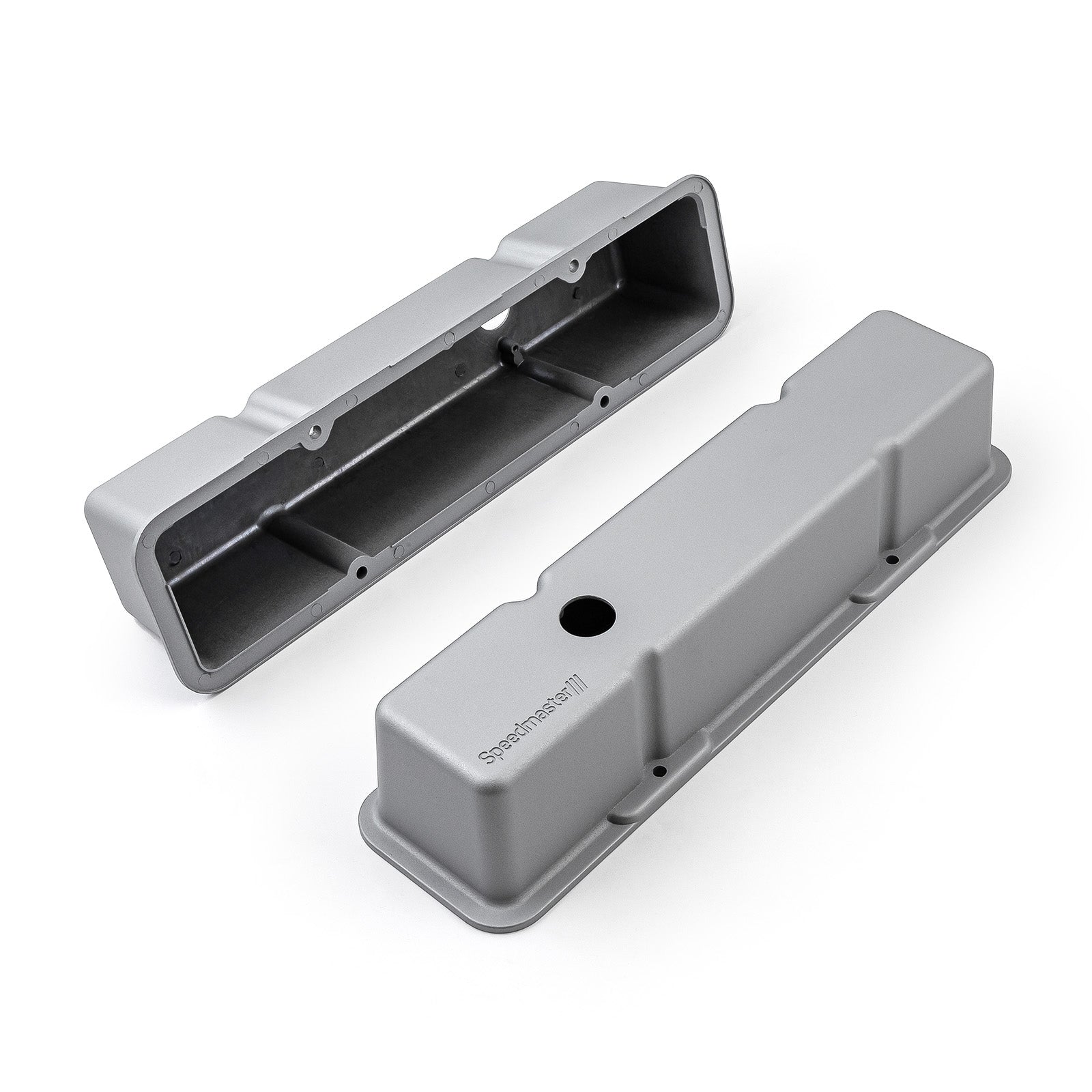 Cubra su tren de válvulas con un juego de tapas de válvulas Speedmaster de aluminio fundido. Su resistente diseño de aluminio fundido a presión garantiza un excelente sellado de la junta y disipa el calor mejor que muchas otras tapas. Vienen en modelos altos y bajos, y la mayoría incluye deflectores atornillables que se pueden reemplazar.