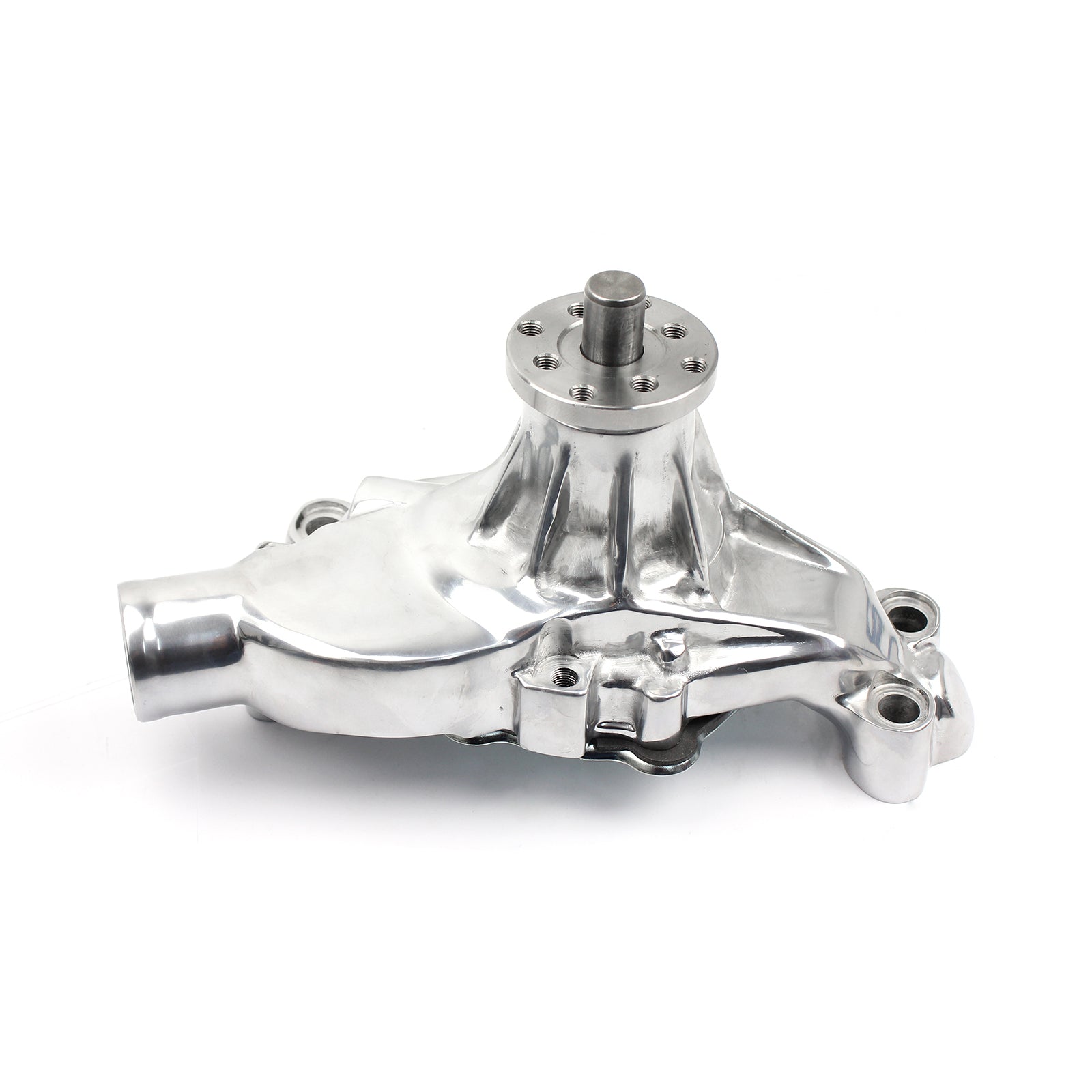 Bomba de agua corta de aluminio pulido de alto volumen Chevy SBC 350 con puerto de calefacción