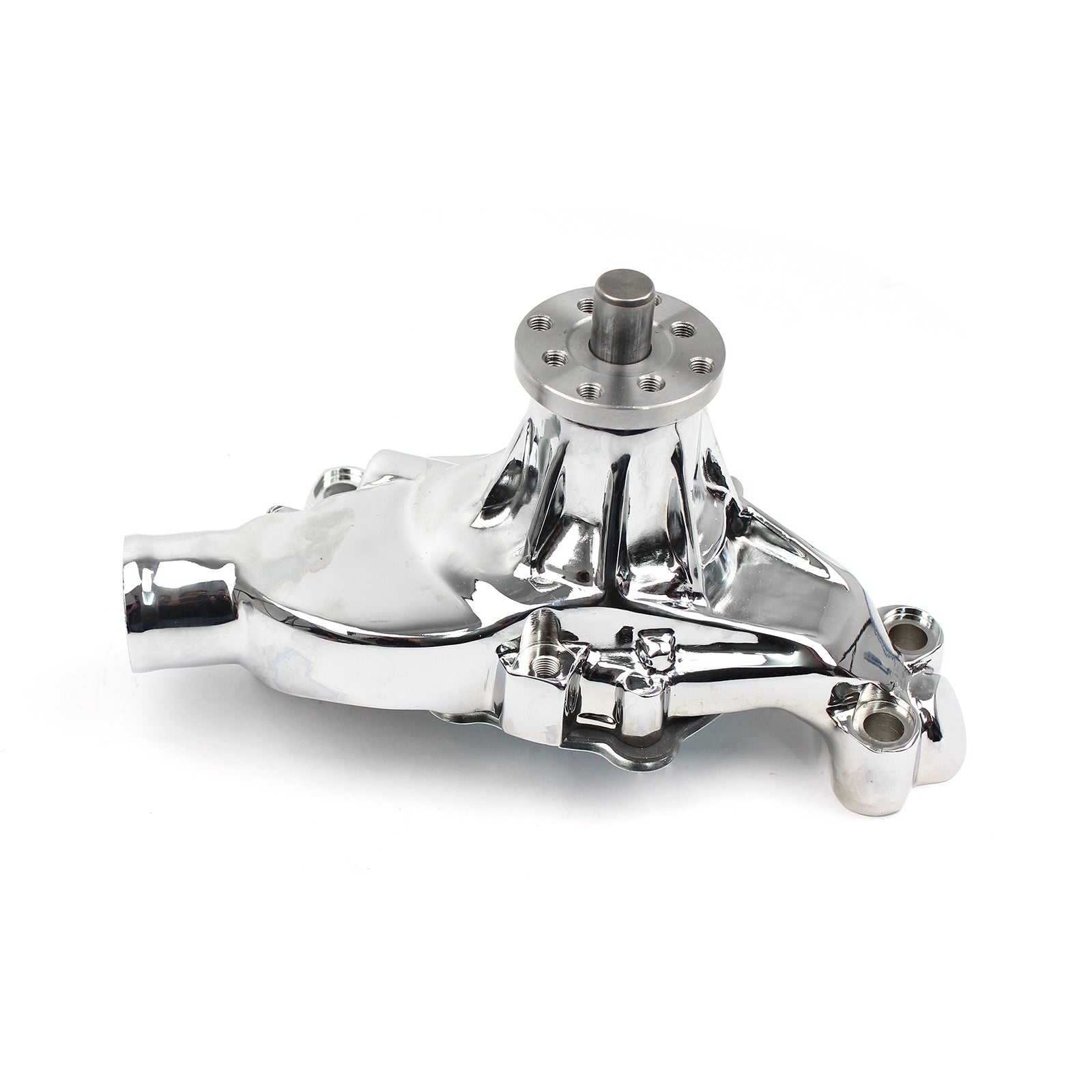 Bomba de agua corta de aluminio de alto volumen para Chevy SBC 350 con puerto de calefacción [cromada]