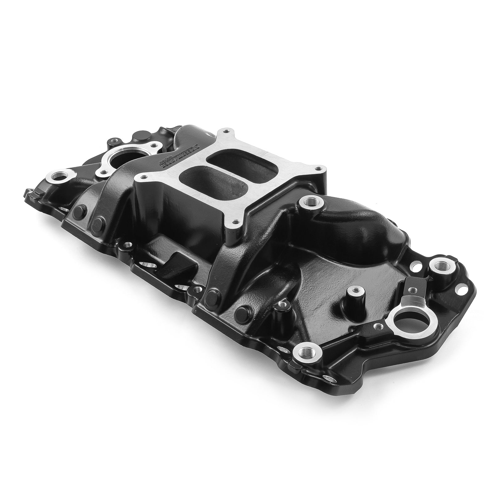 The Speedmasterª MidRise manifolds, along with the similar MidRise Air, are the most powerful dual plane manifolds available. For non-pollution controlled street machines, these are among the very best manifolds you can use. They feature a square bore carburetor flange, nitrous bosses, four corner water ports, and dual distributor hold downs. These manifolds are approximately 5/8"“ taller than the LowRise series. On medium horsepower engines, dyno tests have shown that this manifold comes very close to producing similar power and torque numbers as our shootout racing intake manifold.