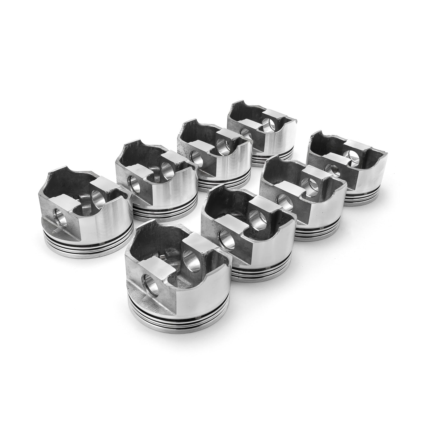 Los pistones hipereutécticos con revestimiento antifricción en el faldón se fabrican con una aleación de aluminio que contiene un 16 % de silicio para mayor resistencia y desgaste. Al combinar la aleación hipereutéctica con el proceso de moldeo permanente, el pistón es resistente, ligero y térmicamente eficiente. Estos pistones ofrecen una holgura entre pistón y pared más estrecha, lo que mejora el sellado de los segmentos y la longevidad. Son ideales para carreras urbanas, de brackets y en óvalos.