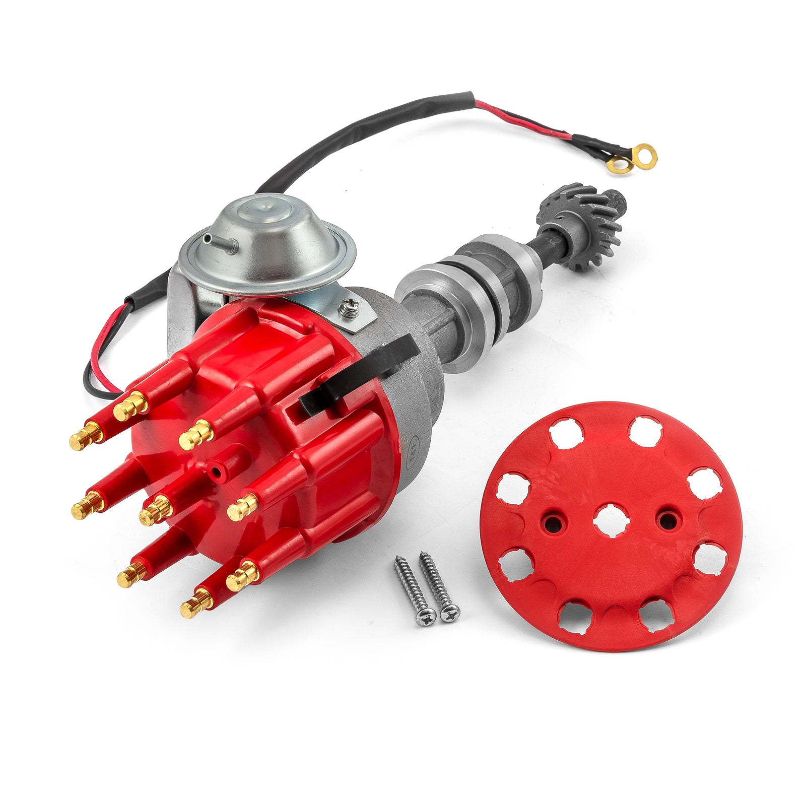 Un captador magnético sin mantenimiento dentro del distribuidor activa un módulo de encendido de última generación bajo la cubierta cromada. La mayor potencia de este encendido autónomo supera con creces a los encendidos de serie y ayuda a suavizar la banda de potencia desde el ralentí hasta altas RPM. Para mayor estabilidad y resistencia, un eje de acero de gran tamaño gira en un rodamiento sellado superior, mientras que un buje centinela extralargo guía el eje en la parte inferior de la carcasa. Para optimizar el consumo de gasolina, incluimos un conjunto de avance por vacío, y puede adaptar la curva de avance mecánico a su motor. Para un excelente rendimiento en carretera, ¡el distribuidor de fundición listo para usar Serie 7000 es la mejor opción!