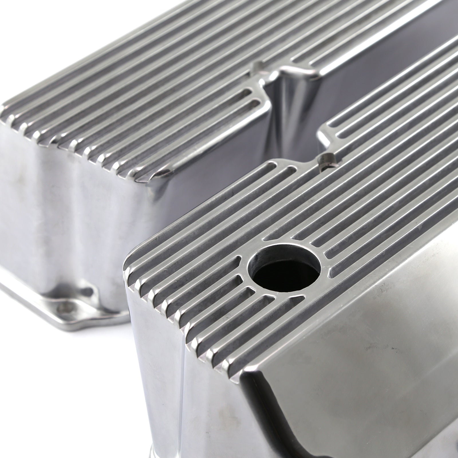 Tapas de válvulas con aletas de aluminio pulido para Ford 302 351C Cleveland - Altas con orificio