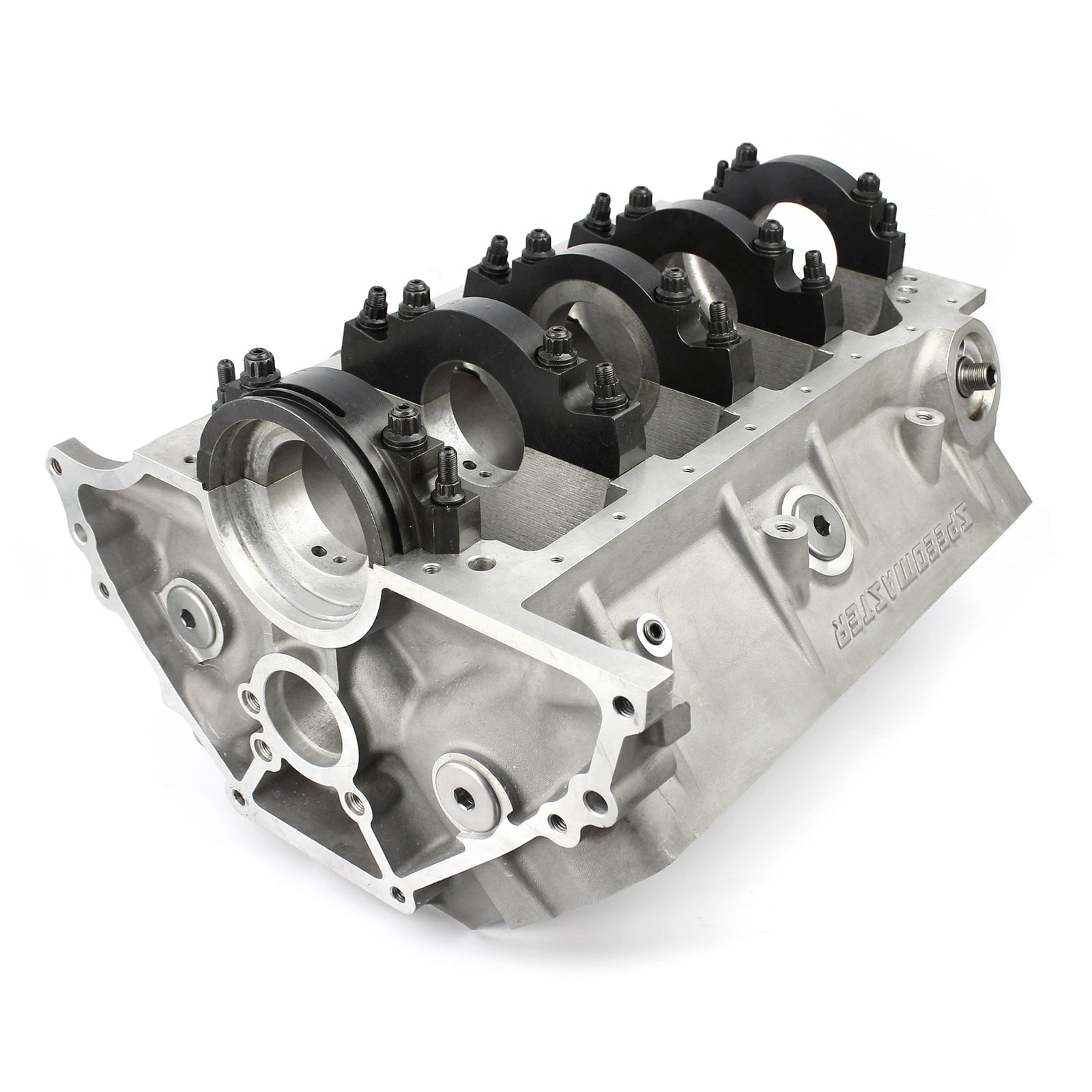 Features Include: Ductile iron sleeves and extra thick cylinder walls & decks, 4 bolt splayed mains, enlarged bosses for offset or oversize lifters and scalloped water jacket holes for improved cooling. Siamesed cylinders and front and rear external oil inlets, crossover and restrictor provisions to simplify plumbing with external pump. Screw in freeze plugs. Used in 1500+HP Applications!