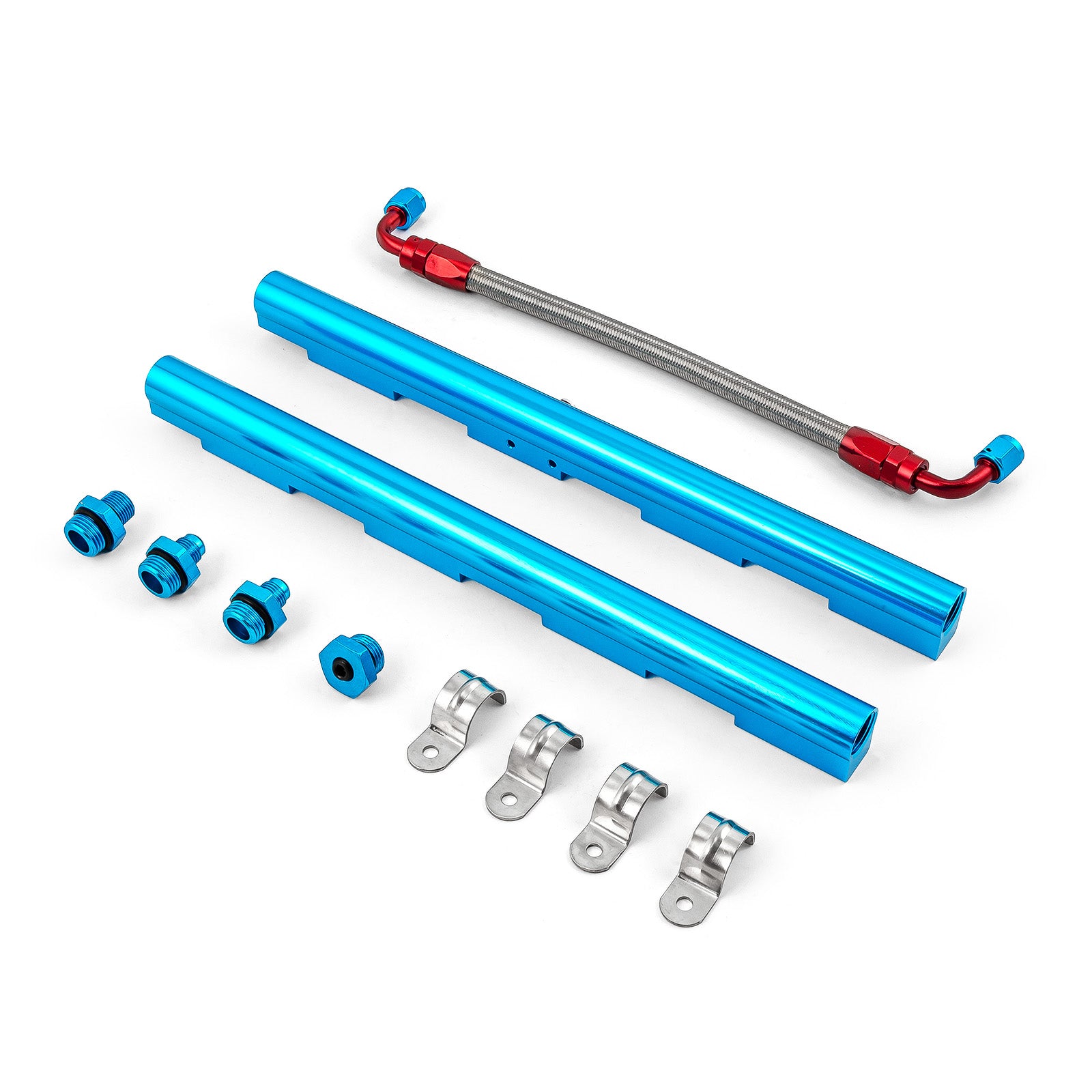 Estos rieles de combustible Speedmaster cuentan con un mayor diámetro interno que amortigua las pulsaciones y proporciona un mayor volumen de combustible, garantizando que sus inyectores nunca se sequen. Además, ofrecen una mejor distribución del combustible y, en consecuencia, mayor potencia. Fabricados en aluminio de grado aeronáutico de alta resistencia y ligereza, su construcción en aluminio anodizado azul ofrece rendimiento y una apariencia de coche de exhibición. Compatibles con gasolina, combustibles ULP y premium. Atención: No apto para colectores de admisión de serie; diseñado exclusivamente para admisión de posventa. Compatible con: PCE, PCE, Edelbrock, Professional Products, Holley Performance Products y admisión similares. Nuestros kits de riel de combustible incluyen lo que se muestra en la imagen. Tenga en cuenta que podría ser necesario modificar su línea de combustible de serie para adaptarla a nuestro sistema de riel de combustible. Podrían requerirse accesorios adicionales según su aplicación.