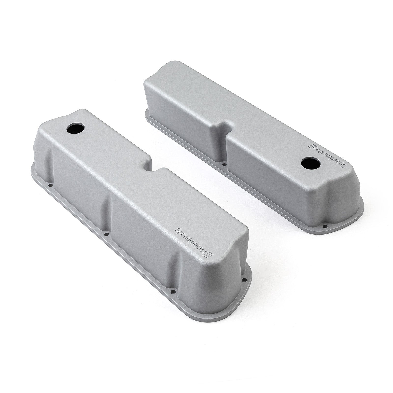 Cubra su tren de válvulas con un juego de tapas de válvulas Speedmaster de aluminio fundido. Su resistente diseño de aluminio fundido a presión garantiza un excelente sellado de la junta y disipa el calor mejor que muchas otras tapas. Vienen en modelos altos y bajos, y la mayoría incluye deflectores atornillables que se pueden reemplazar.