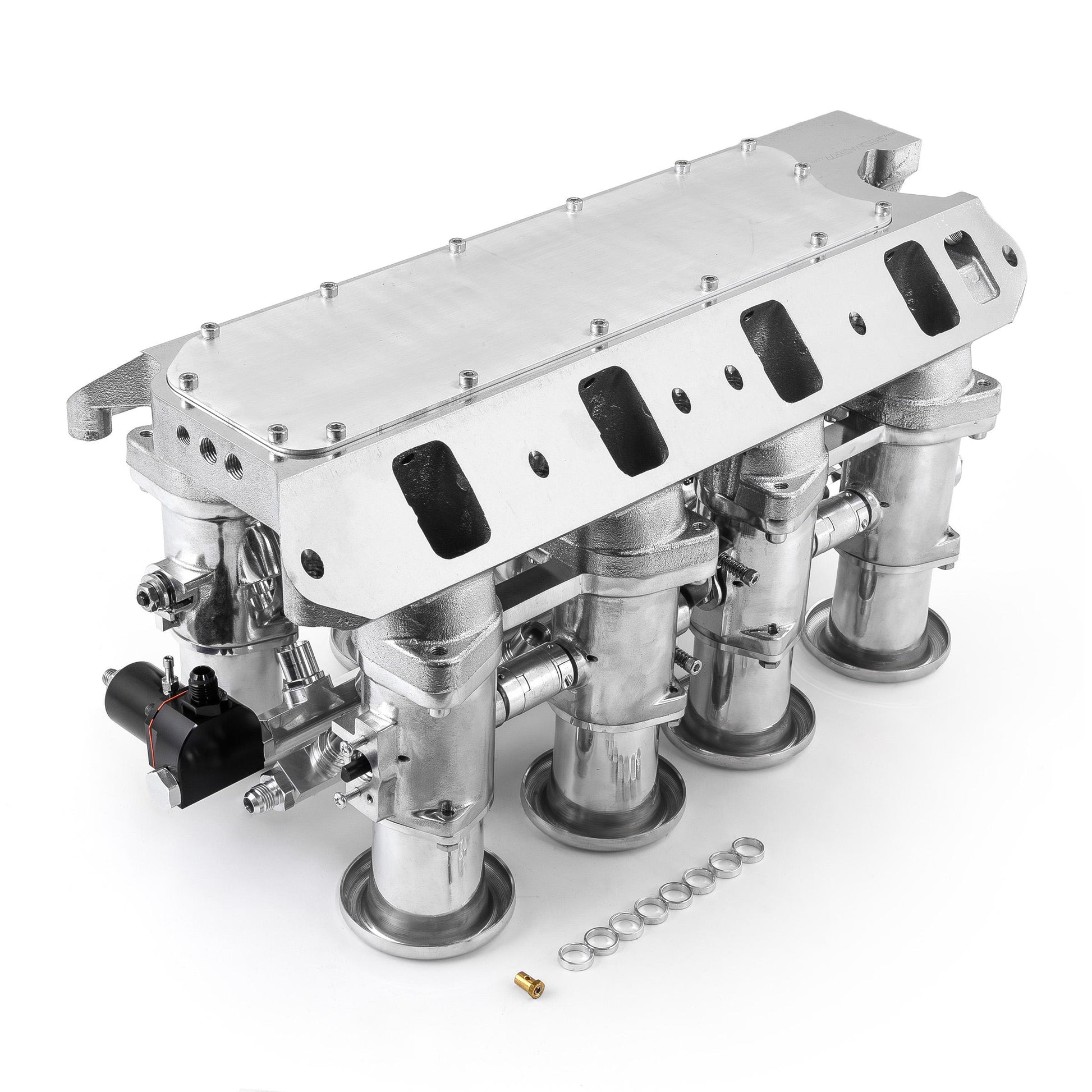 The Speedmaster Individual throttle body EFI system have all the flash of classic Weber induction but provide higher state of tune and engine performance versatility of EFI. Delivering crisp EFI performance with systems capable of supporting high hp. Fuel and air is delivered through precision cast aluminum 50mm IDA style throttle bodies that allow for superior idle characteristics and astounding throttle response while improving emissions and economy through tight air/fuel ratio control.