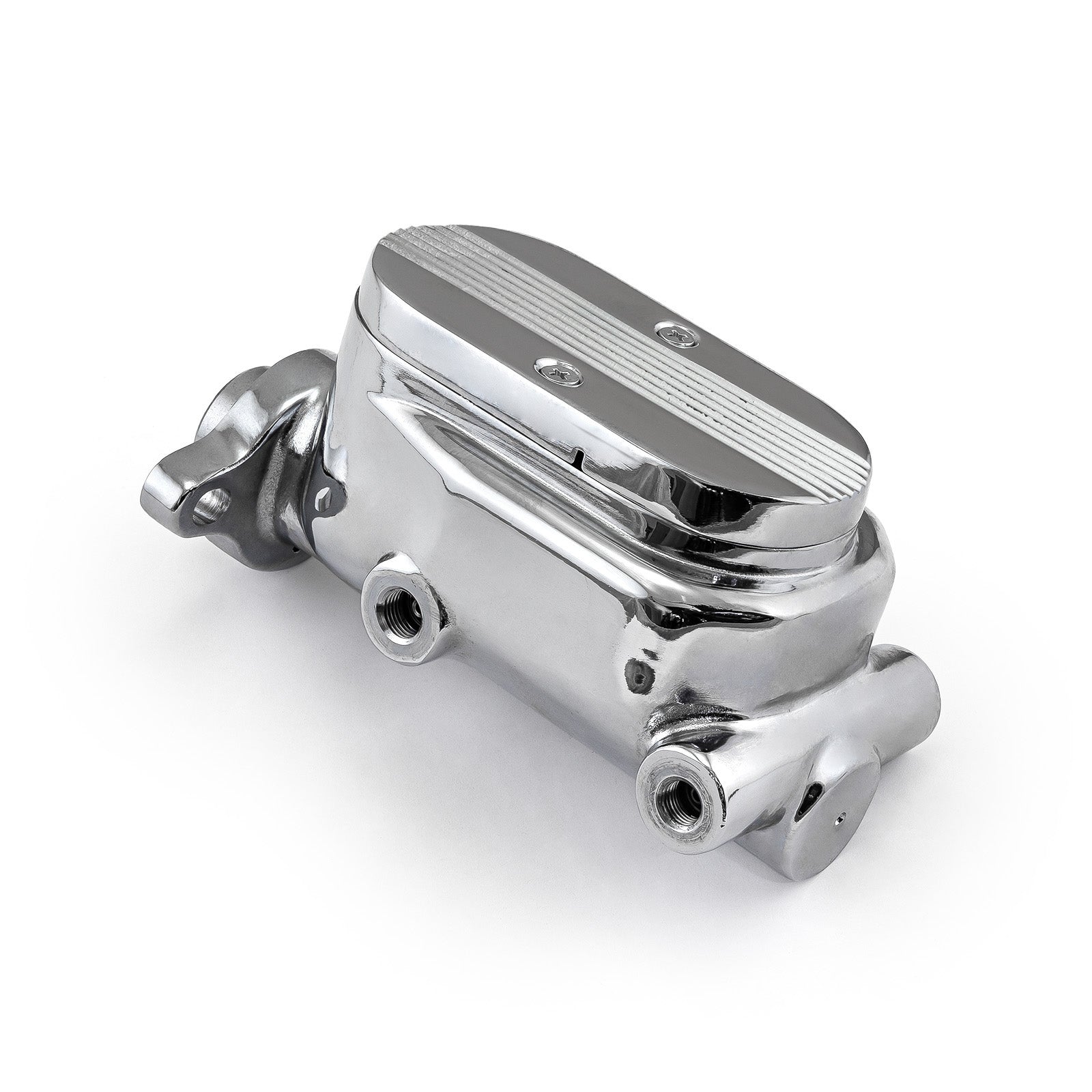 Cilindro maestro de freno universal GM de aluminio con aletas superior, cromado (diámetro interior de 1,000")