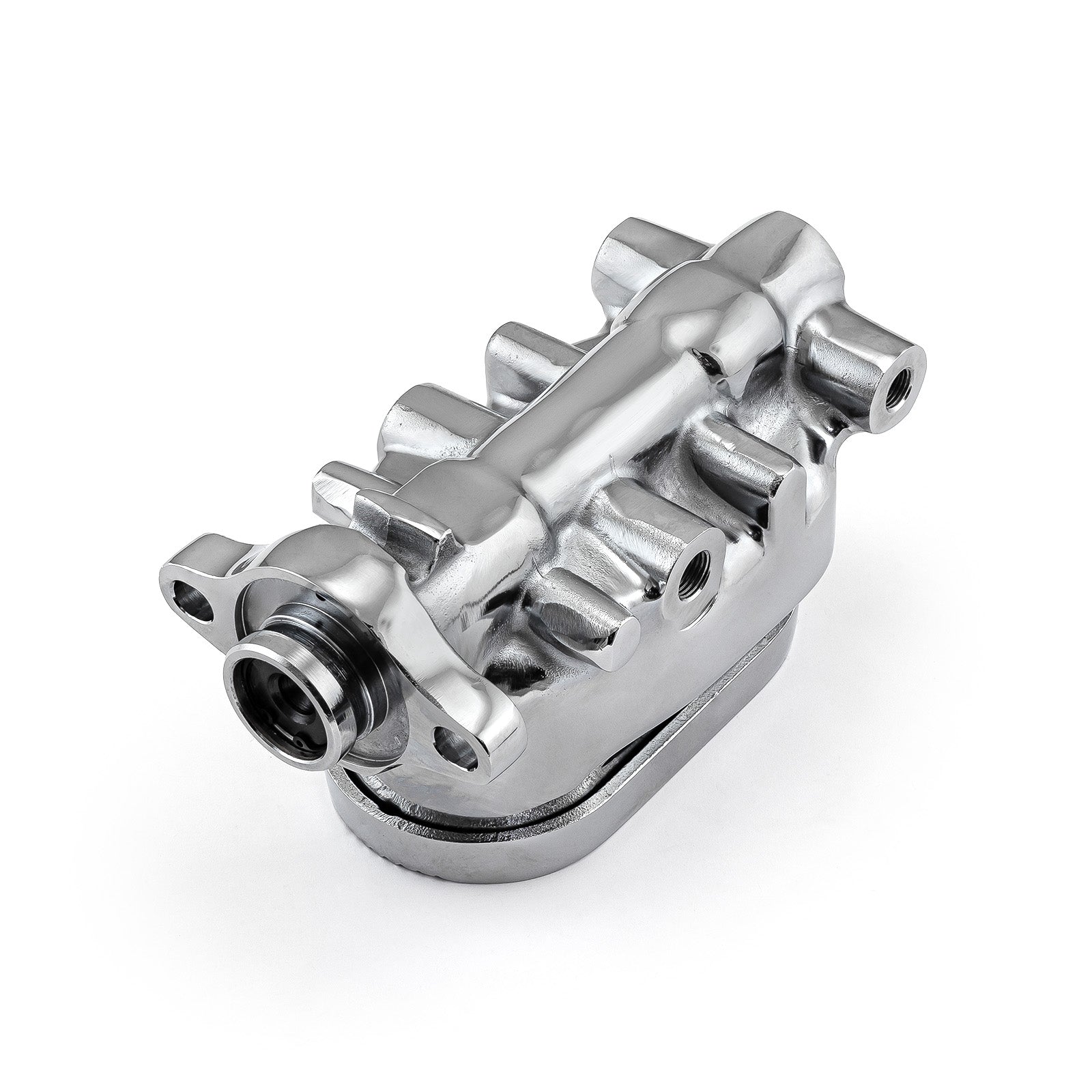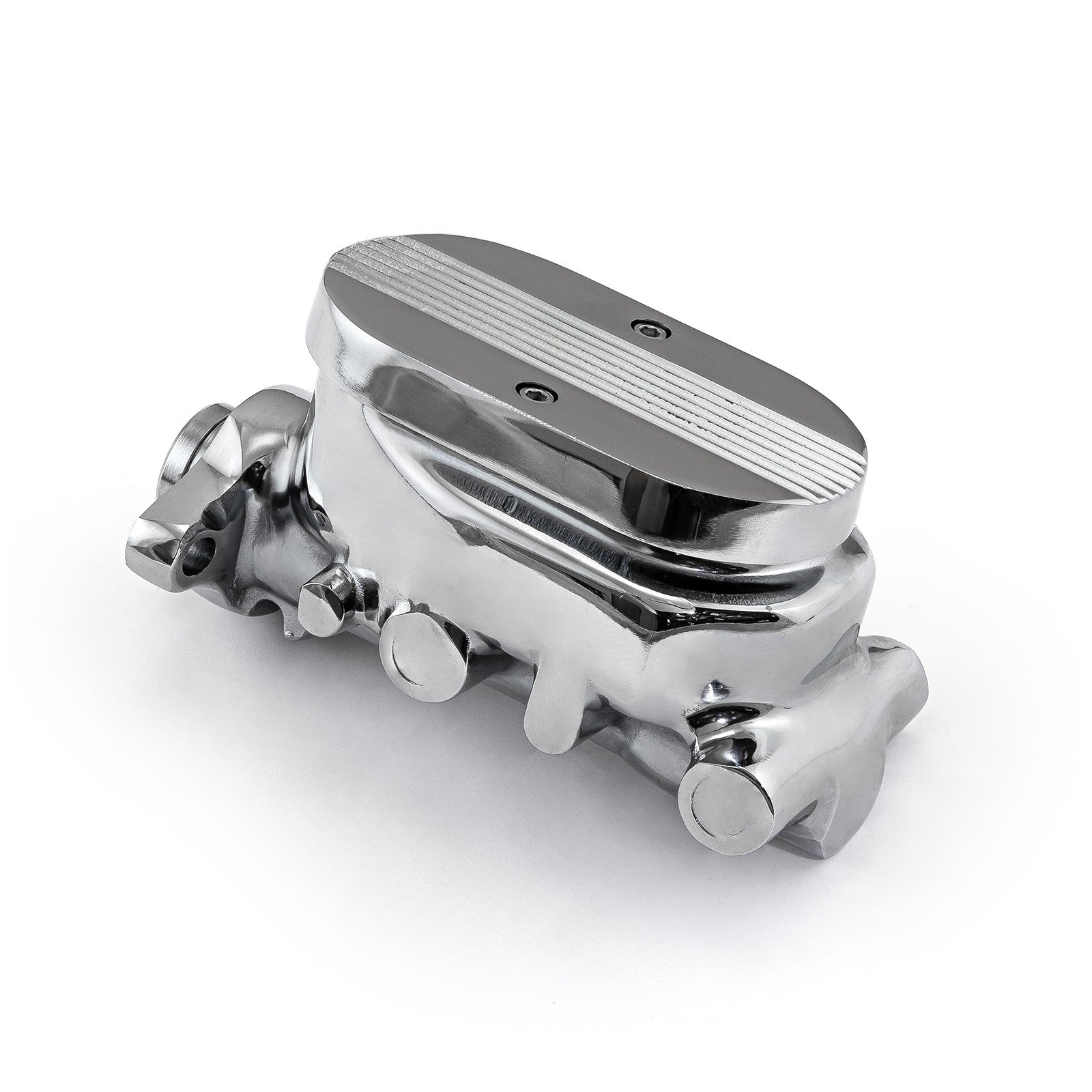 Cilindro maestro de freno universal GM de aluminio con aletas superior, cromado (diámetro interior de 1,125")