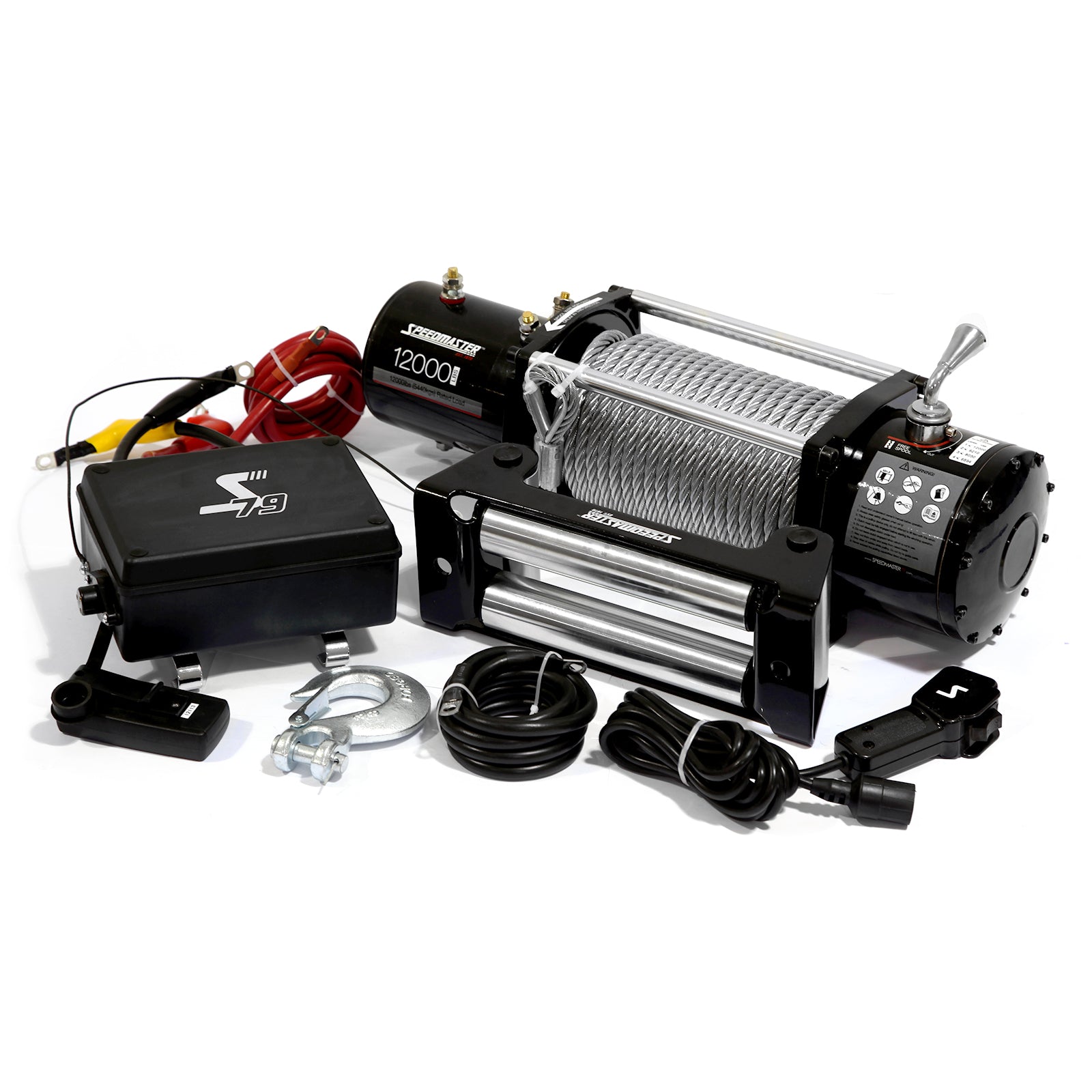 The Speedmaster 4wd winches encompass all the best features you could want in a winch. Ranging from 9500lb - 13000lb, they can handle any situation you could get into. Every winch is finished with a black powder coat, stainless steel hardware, and aluminum crossbars to provide great looking and long lifetime. They include a wired remote switch and a wireless remote control, waterproof box with the versatility to be mounted over the winch motor or winch cable, a four-way roller fairlead and forged hook. Speedmaster winches are the complete recovery system with the muscle and reliability to bail you out of any situation.