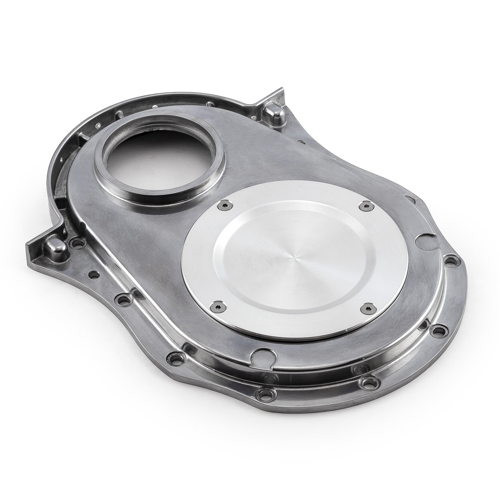 Speedmaster aluminum timing covers are the perfect way to add strength and durability to the front of your engine, not to mention increased looks. TheseSpeedmaster cast aluminum timing covers are the perfect addition to your powerhouse. They feature a stout die-cast aluminum design to keep true, and have thick gasket rails for rigidity and optimum oil sealing. With their stunning finish, you'll be sure to turn some heads when you pop the hood. The covers clear most timing chains and under-the-cover style gear drives. Some minor machining may be required for use with cam buttons or roller cams.