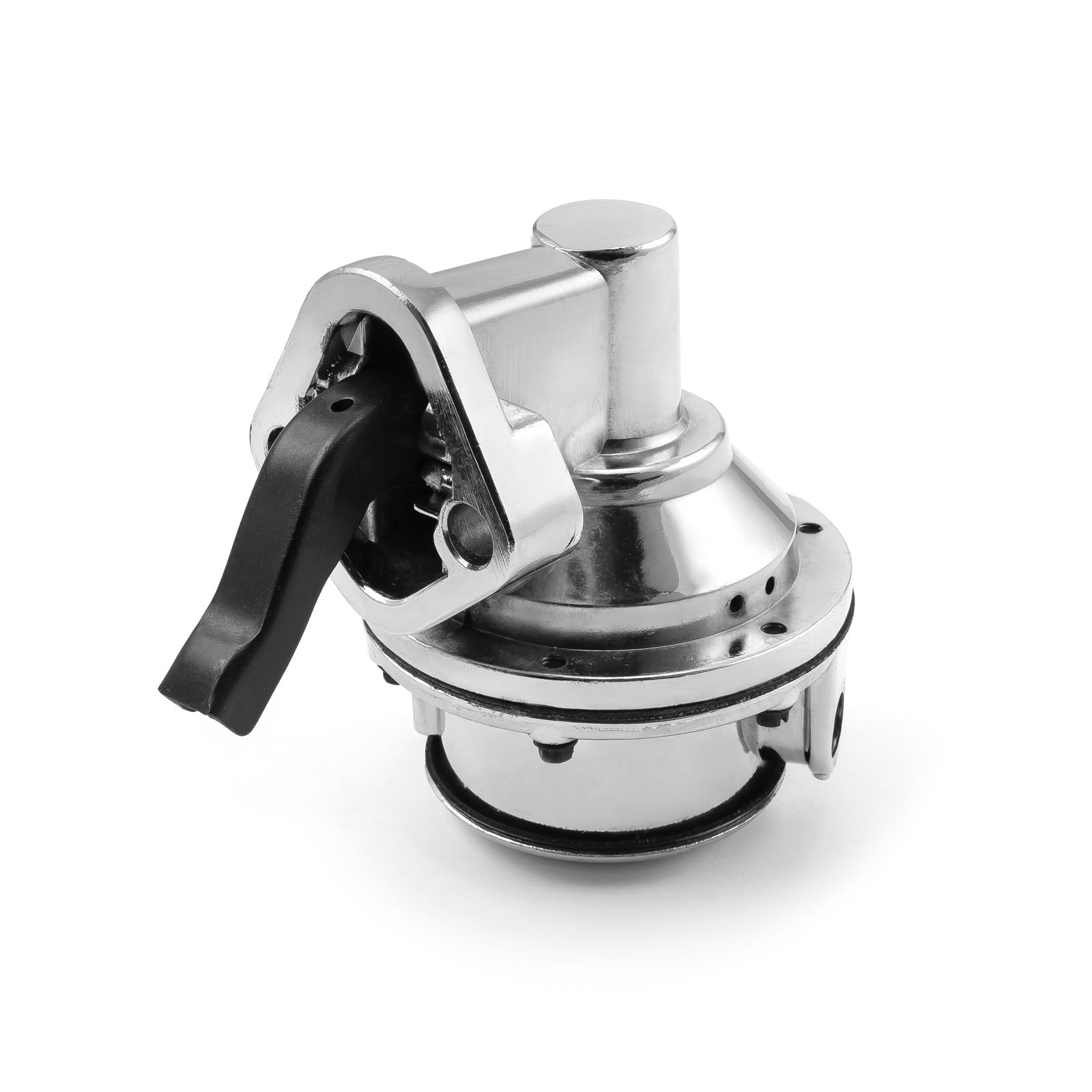 Speedmaster mechanical fuel pumps are designed to work with stock or mildly modified engines, and deliver free-flow outputs of 115 gph, that's twice what a normal pump delivers. These pumps are plated with a bright finish for good looks and corrosion resistance, and the lower housings of both can be rotated through 360 degrees, to make fitting into tight places a snap. They have large orifices for high flow rates. These pumps are not compatible with methanol or alcohol fuels, and should not be used with fuel injection systems.