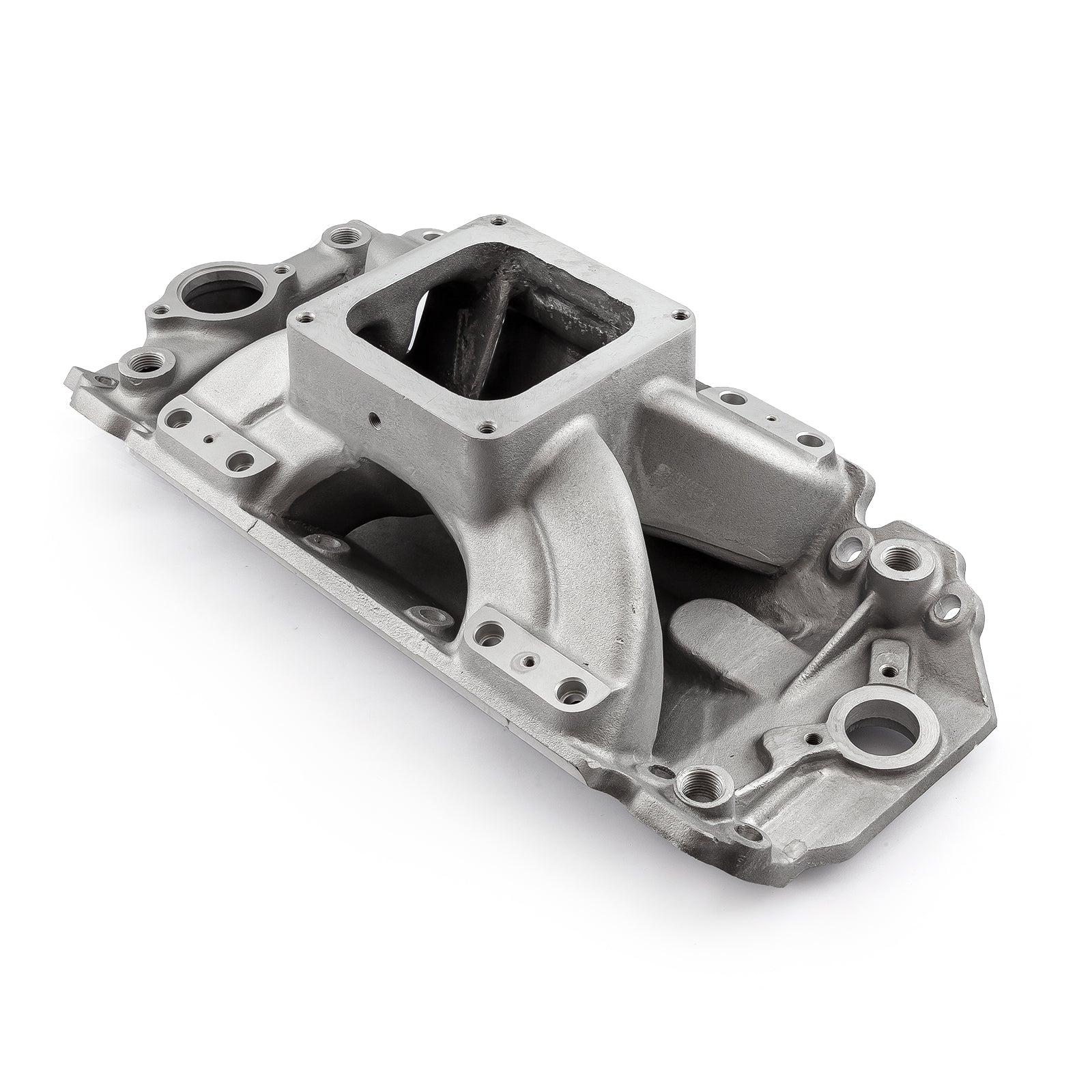 These Shootout Series Manifolds are designed to use a dominator style carburetor. Our single plane big block manifold is now available with Dominator carburetor flange. Dual distributor holddowns. Nitrous/injector bosses. Four corner water ports. Available with show polished or satin (unpolished) finish. Fits big block Chevy rectangular port cylinder heads on standard deck blocks.