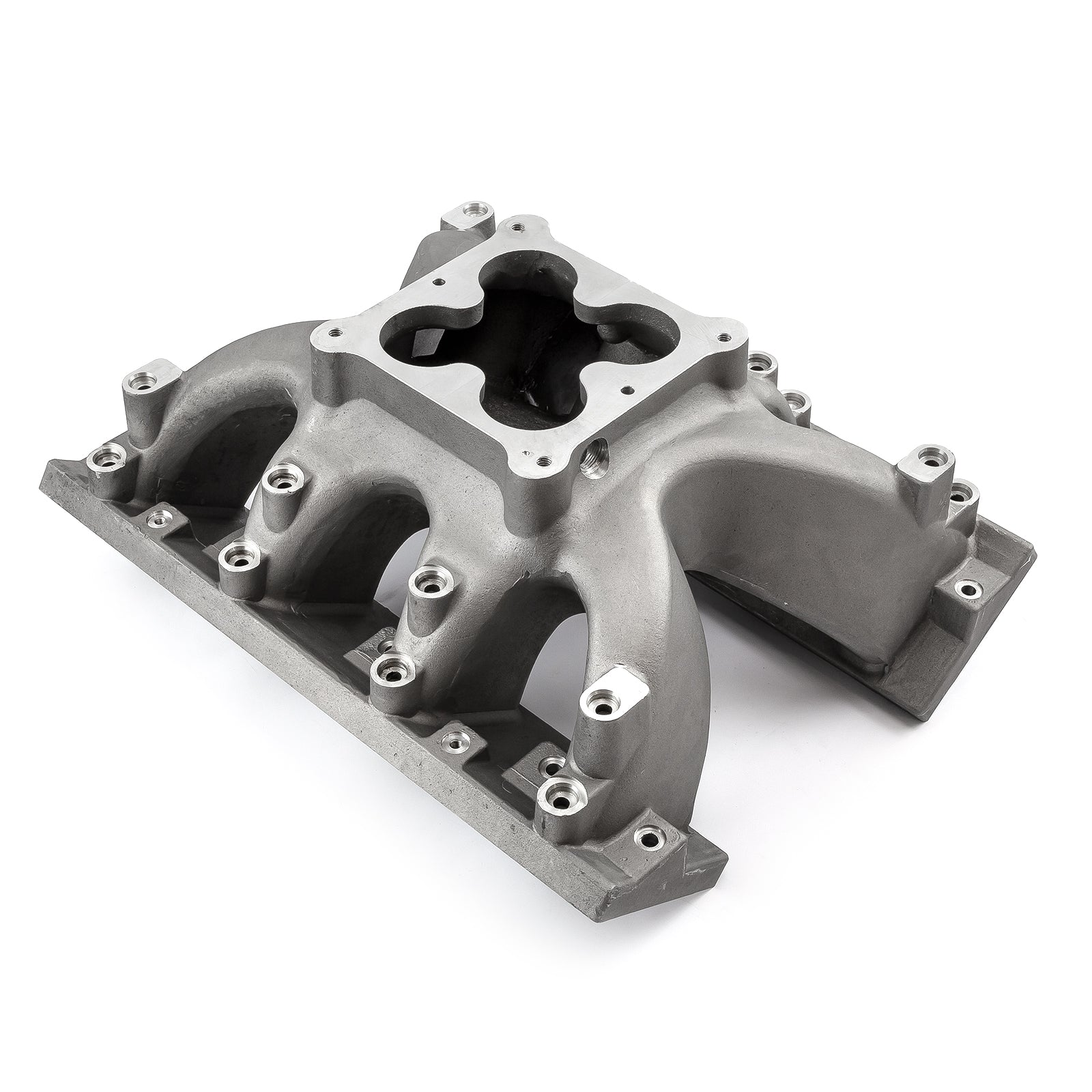 These Speedmaster Shootout Series Manifolds are designed to use a dominator style carburetor. It has a carb flange that accommodates a Dominator carburetor. This manifold also has pads on the ports which can be drilled and tapped for nitrous nozzles or it is available from Speedmaster machined for injector nozzles. Use the Speedmaster Complete Fuel Rail Kit with this manifold.