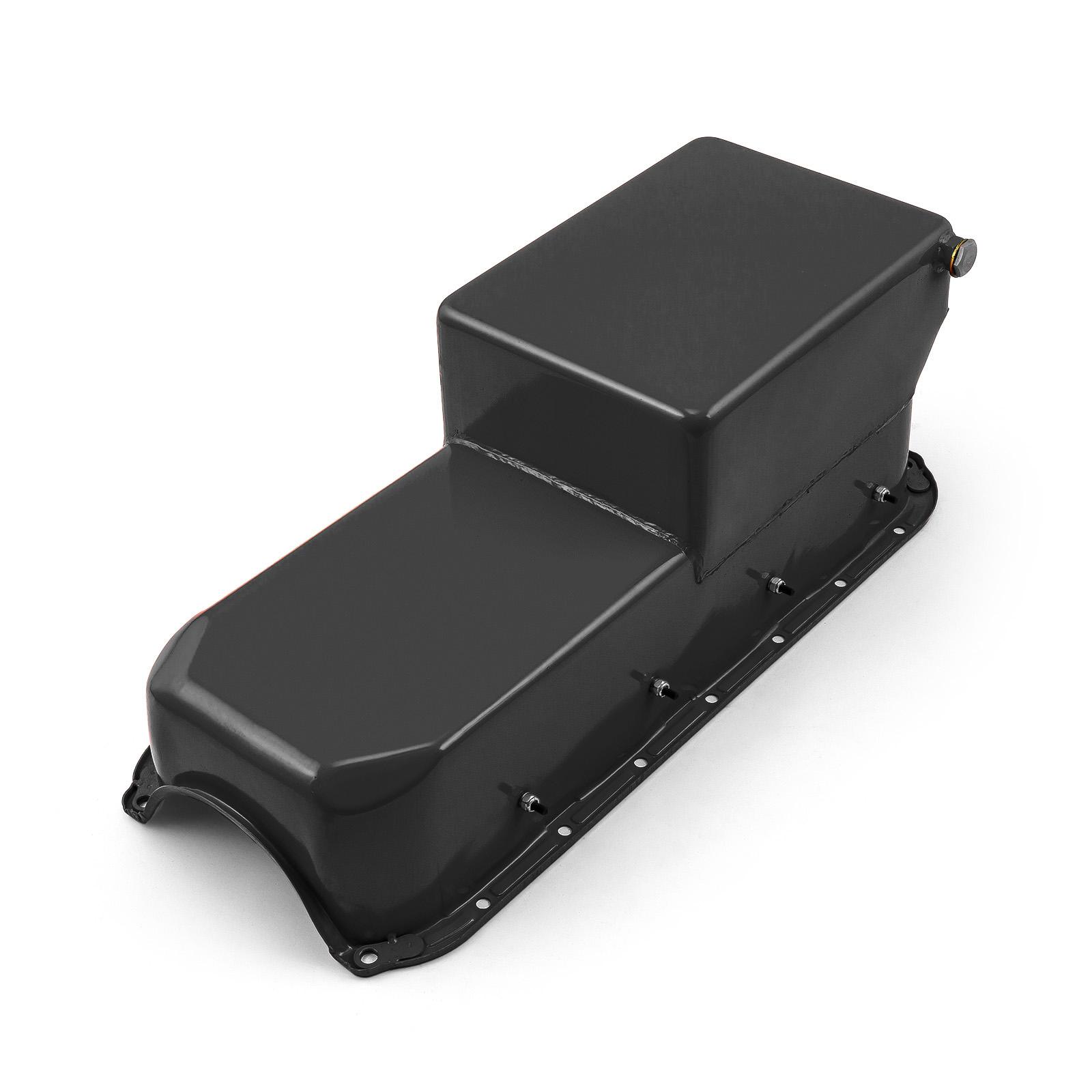 Chevy SBC 350 2Pcs Rms 1955-79 D/Side 7Qt Rear Sump Oil Pan Windage Tray [Black]
