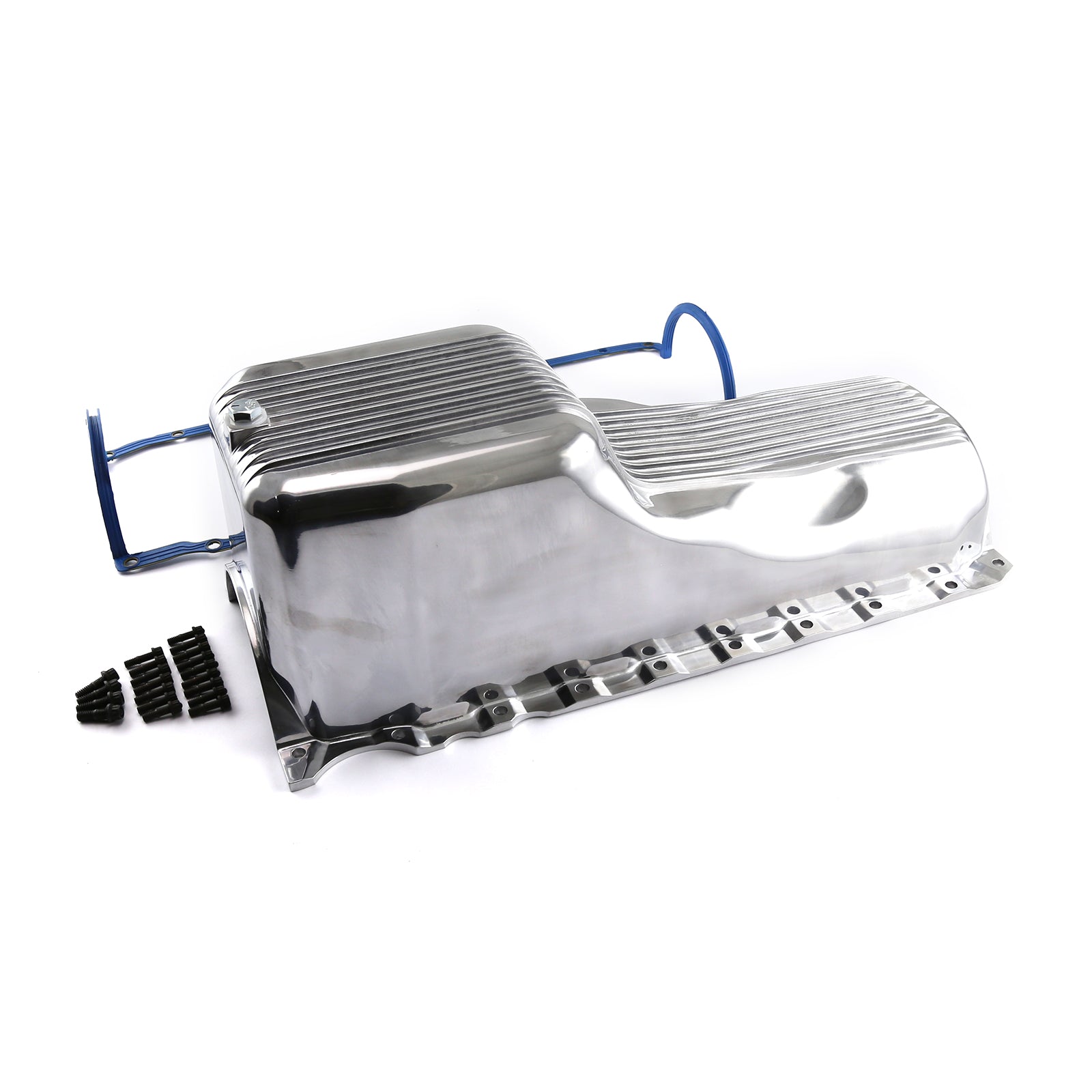 Chevy SBC 350 2Pcs Rms 1980-85 P/Side Polished Finned Aluminum Oil Pan and Gasket Kit