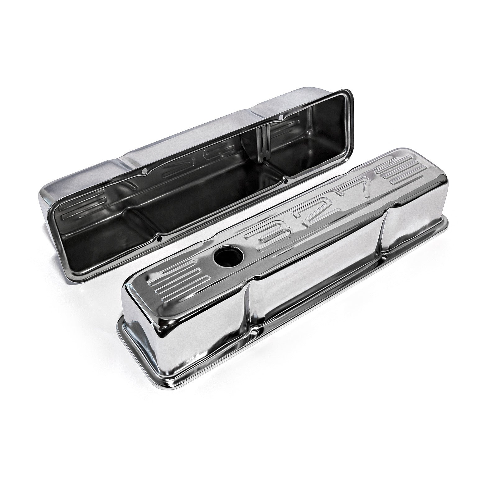 Chevy SBC 350 Chrome "327 Stamped" Steel Valve Covers - Tall w/ Baffled Hole