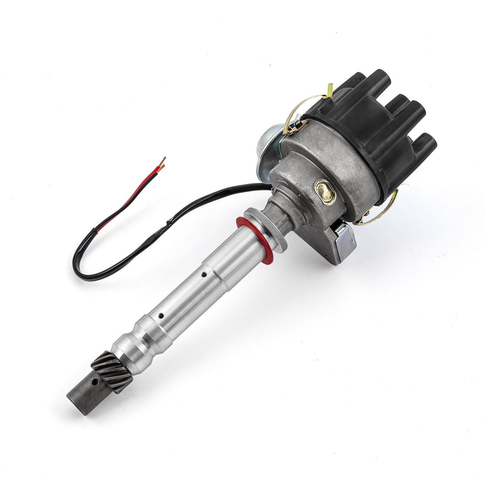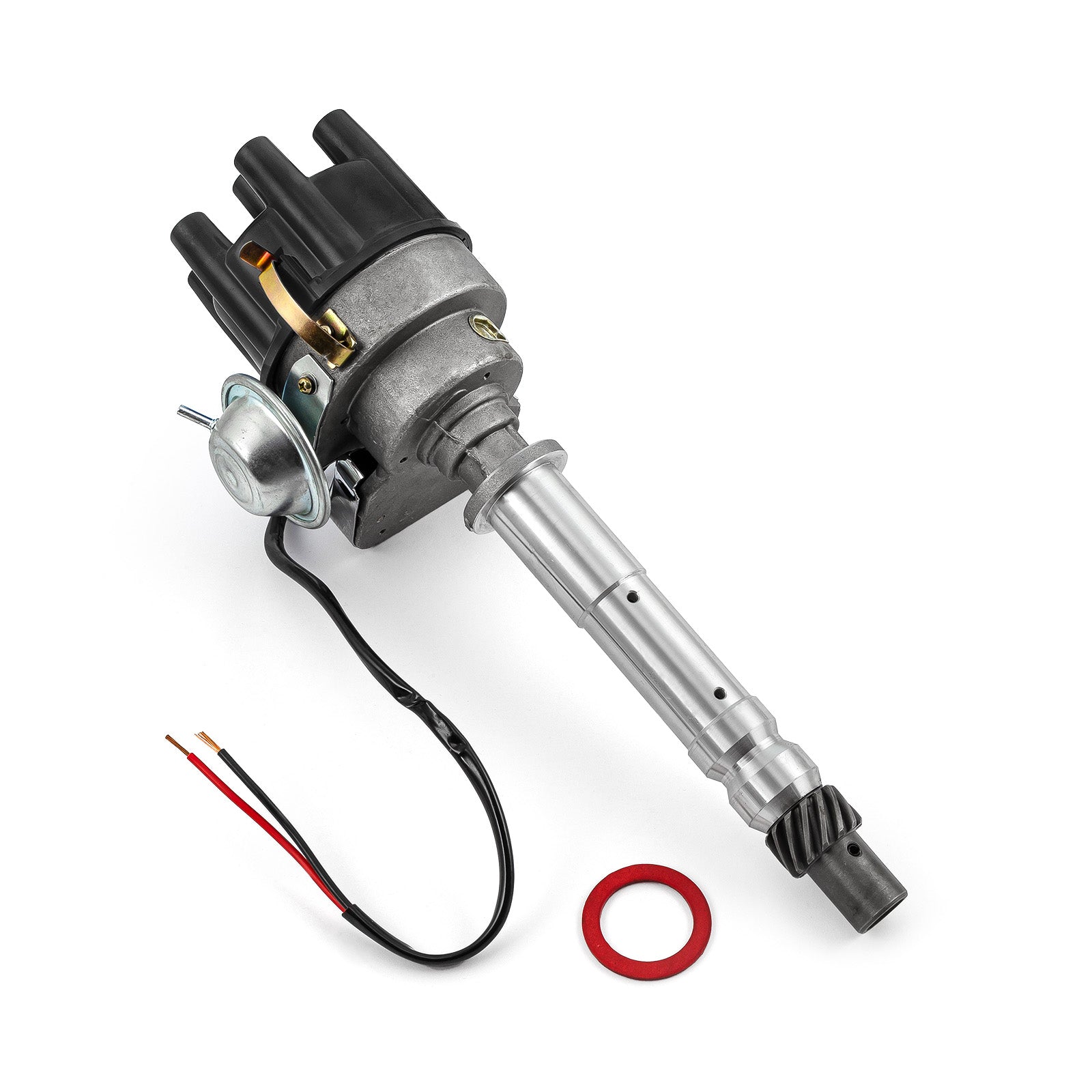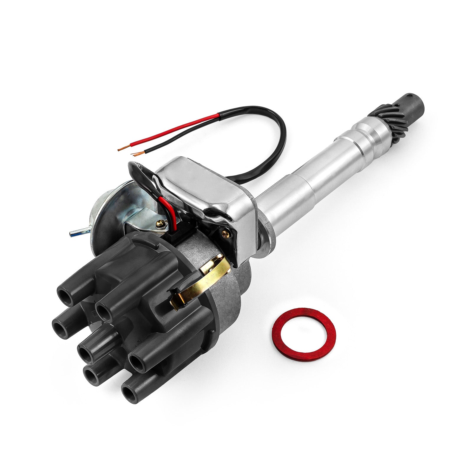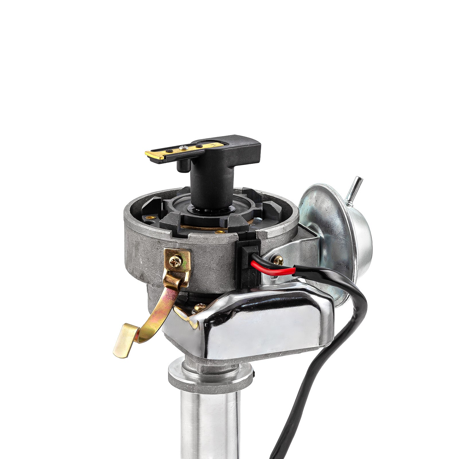 A maintenance free magnetic pick up inside the distributor is used to trigger a state of the art ignition module under the chrome cover. The increased output of this self contained ignition easily outperforms stock ignitions and helps to smooth out the power-band from idle to high RPM. For stability and endurance, an oversize steel shaft spins in a top mounted sealed bearing while an extra-long sentried bushing guides the shaft at the bottom of the housing. To increase gas mileage, we included a vacuum advance assembly, and you can tailor the mechanical advance curve to suit your engine. For excellent street performance, the 7000 Series Cast Ready-to-Run distributor is the best choice!