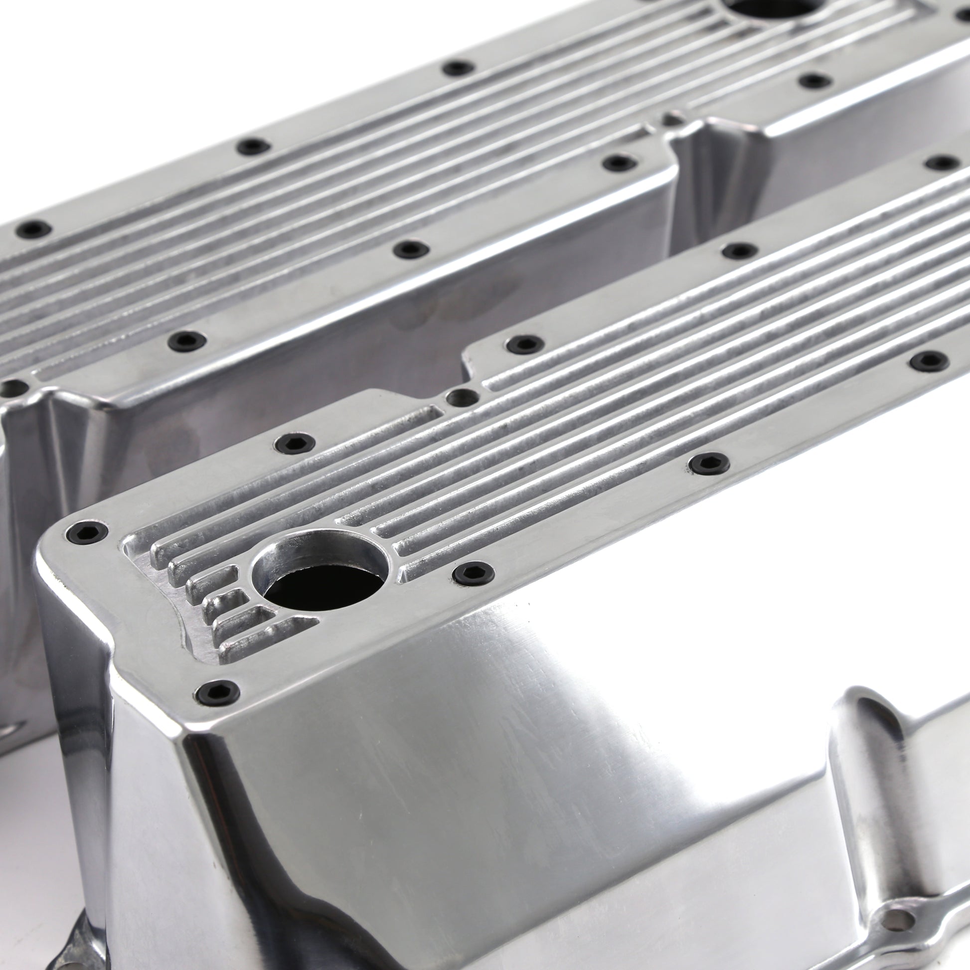 Cover your valvetrain with a set of Speedmaster cast aluminum valve covers. Their strong die-cast aluminum design ensures an excellent gasket seal and dissipates heat better than many other covers. They come in tall and short models, and most include bolt-in baffles that can be replaced. They are available in different finishes to customize the look of your engine bay. If you don't want any breather holes drilled, no problem--they are offered with breather holes or without any holes. Speedmaster aluminum valve covers are the perfect fit for your engine.