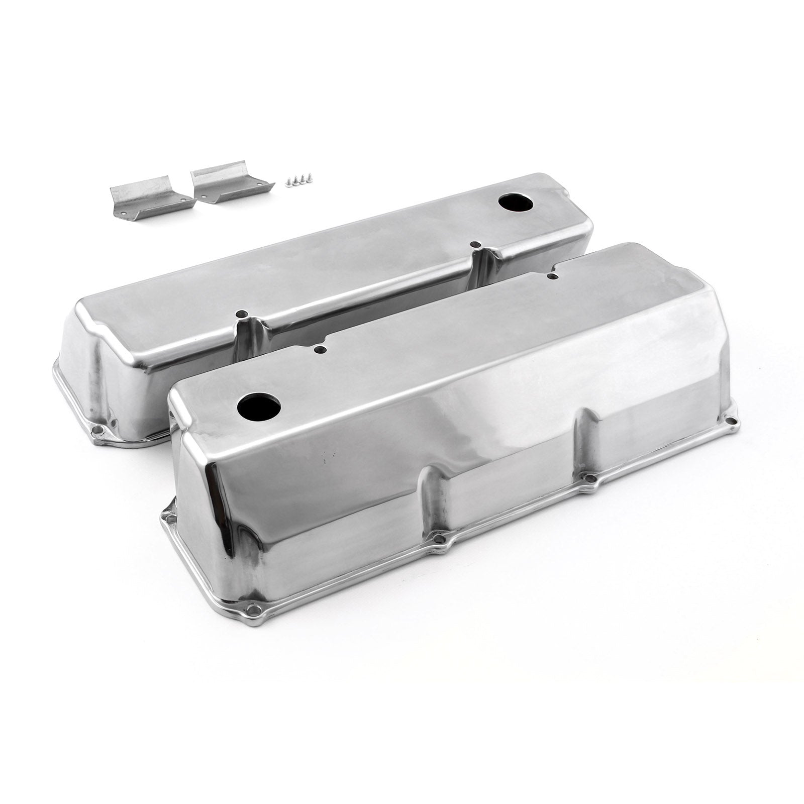 Ford 302 351C Cleveland Polished Aluminum Plain Valve Covers - Tall w/ Hole