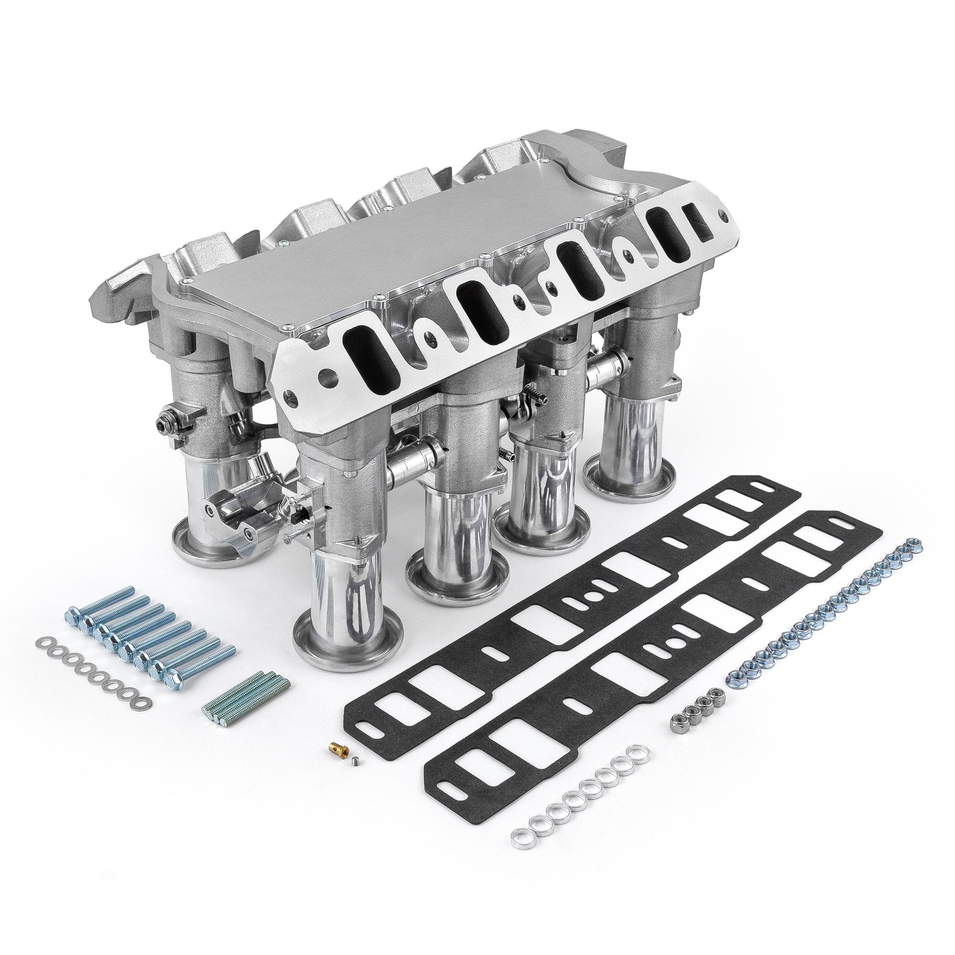 The Speedmaster Individual throttle body EFI system have all the flash of classic Weber induction but provide higher state of tune and engine performance versatility of EFI. Delivering crisp EFI performance with systems capable of supporting high hp. Fuel and air is delivered through precision cast aluminum 50mm IDA style throttle bodies that allow for superior idle characteristics and astounding throttle response while improving emissions and economy through tight air/fuel ratio control.