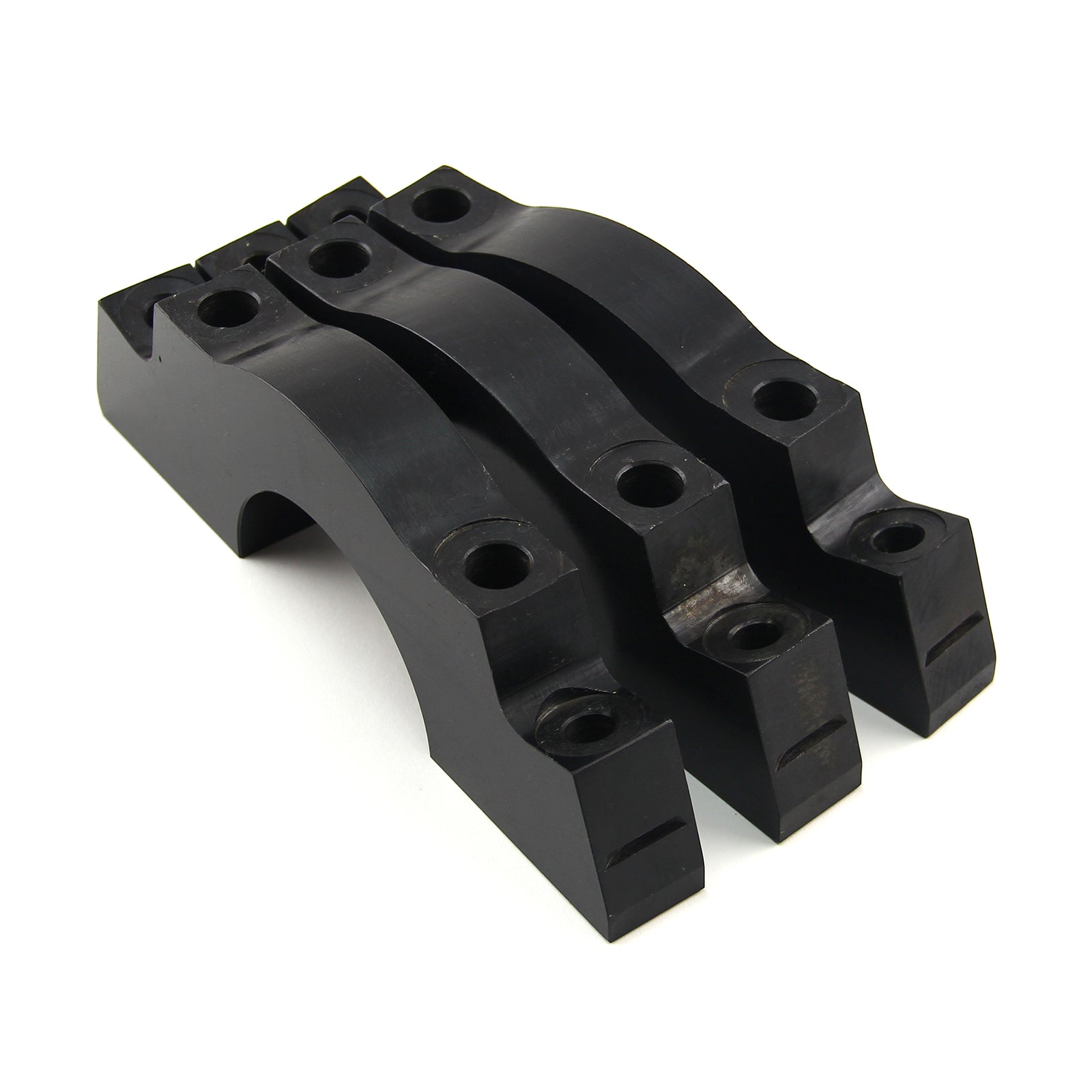 Speedmaster billet main caps are precision CNC-machined from superior-quality 1025 billet steel. They come available as stock replacements (straight bolt) or with splayed outer bolt holes. The splayed caps feature 10 degree angled outer holes to positively reinforce and tie the block together. These extreme main cap sets consist of the center three caps. Speedmaster billet main caps improve reliability in highly stressed engines by reducing distortion of the main bearing bores, and increasing the cap's resistance to closing up under high loads.
