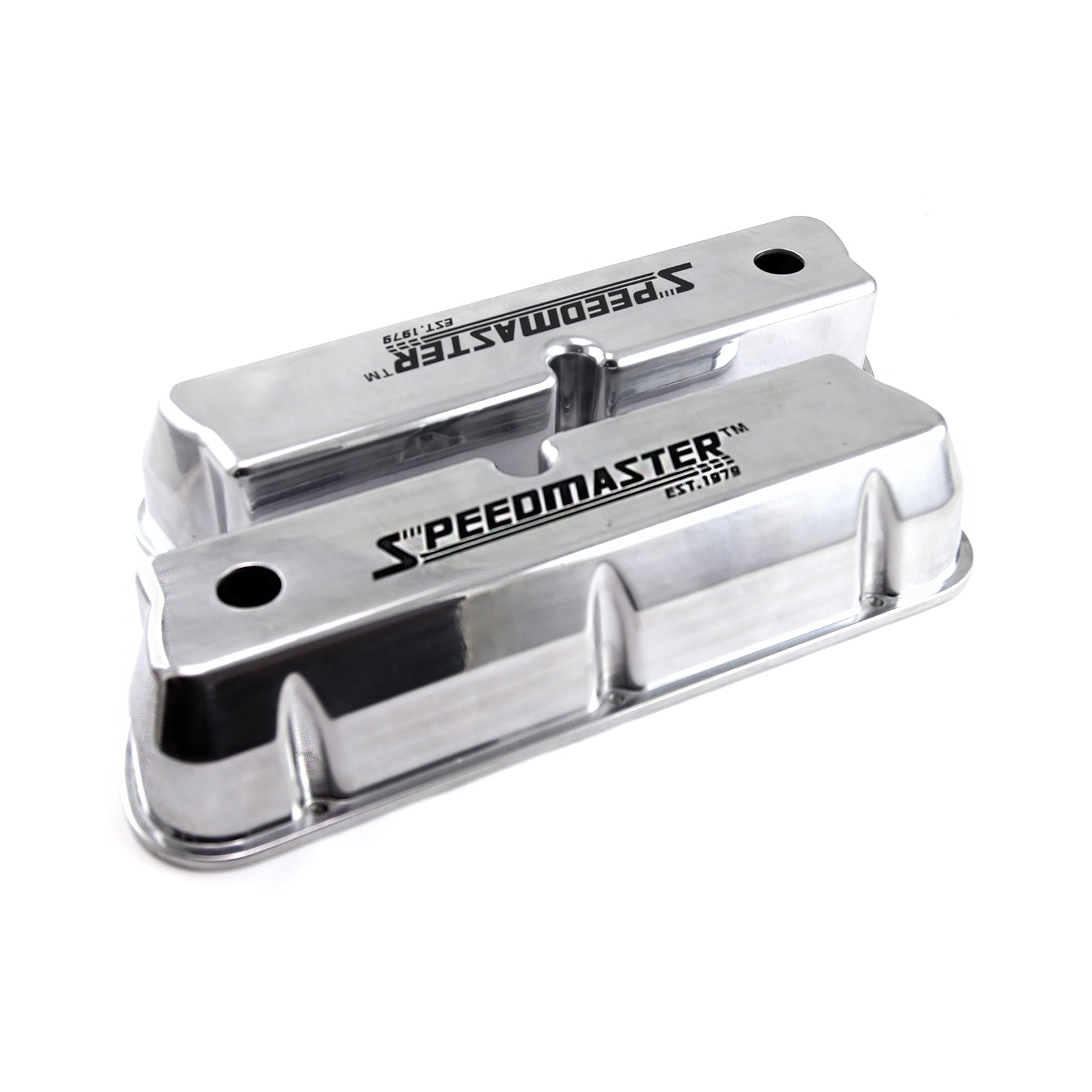 Cover your valvetrain with a set of Speedmaster cast aluminum valve covers. Their strong die-cast aluminum design ensures an excellent gasket seal and dissipates heat better than many other covers. They come in tall and short models, and most include bolt-in baffles that can be replaced. They are available in different finishes to customize the look of your engine bay. If you don't want any breather holes drilled, no problem--they are offered with breather holes or without any holes. Speedmaster aluminum valve covers are the perfect fit for your engine.