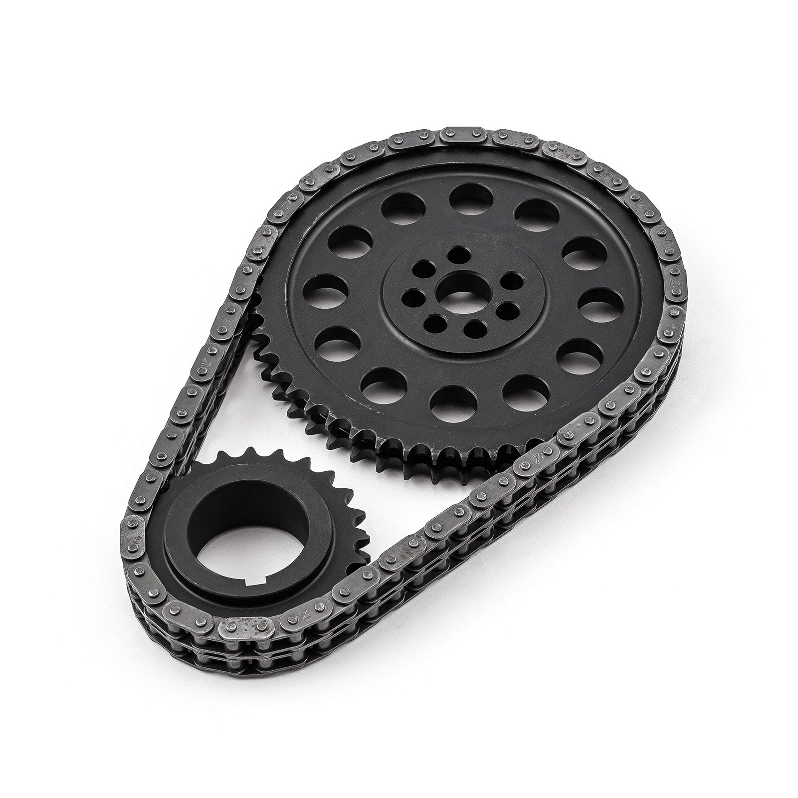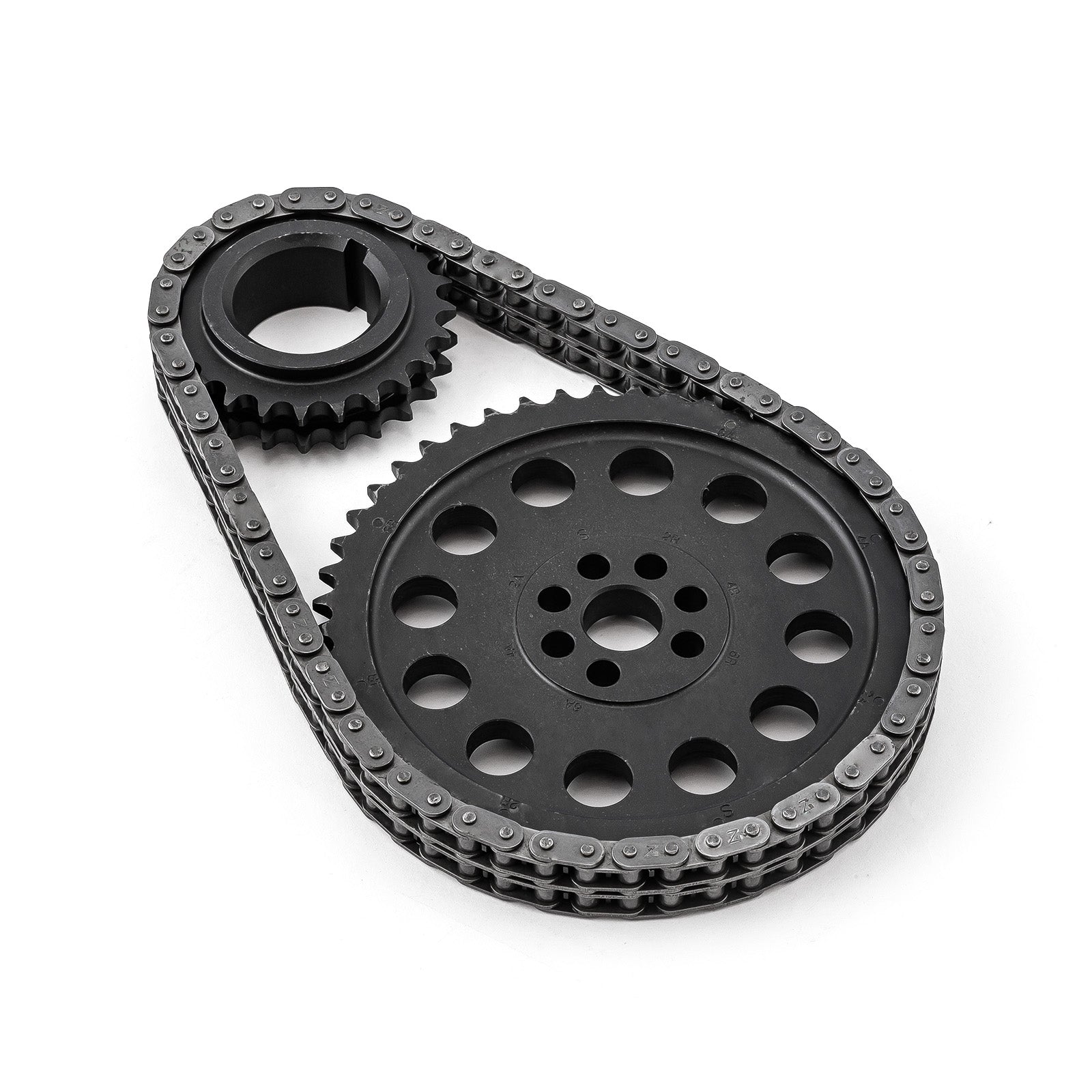 Speedmaster 9 Keyway Double Row Timing Chain Kits are CNC Machined from billet, Engineered for accurate, consistent timing, faster acceleration and top-speed performance. Trust Speedmaster to give you timing sets that will deliver accurate, reliable cam timing. Our billet steel true roller timing sets have rugged double-row, true-roller chains teamed up with billet steel crank and cam sprockets. The crank sprockets have multiple keyways, which allow you to modify your cam timing.