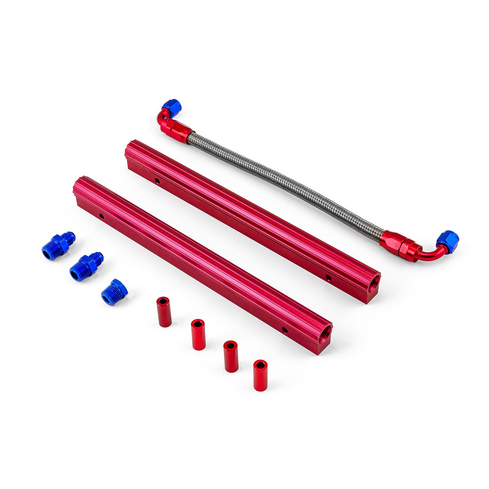 These Speedmaster Fuel Rails feature a larger internal diameter that dampens the pulses and provides increased fuel volume, ensuring that your injectors never run dry. In addition, they yield better fuel distribution and ultimately greater horsepower. Featuring high strength Aircraft Grade Aluminium which is lightweight, the Red anodized aluminum construction delivers performance and a show car quality appearance.